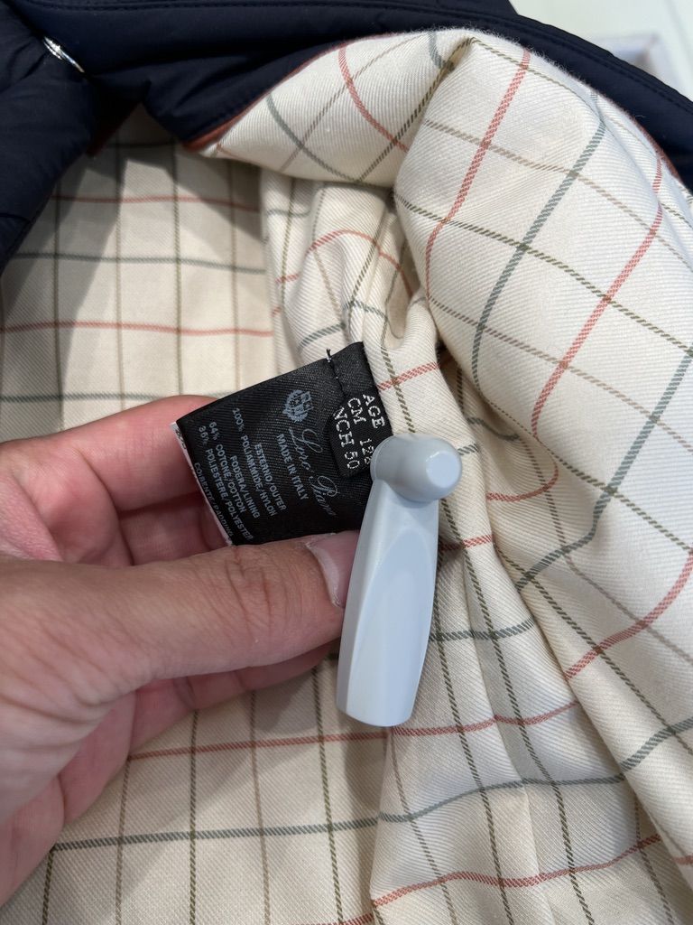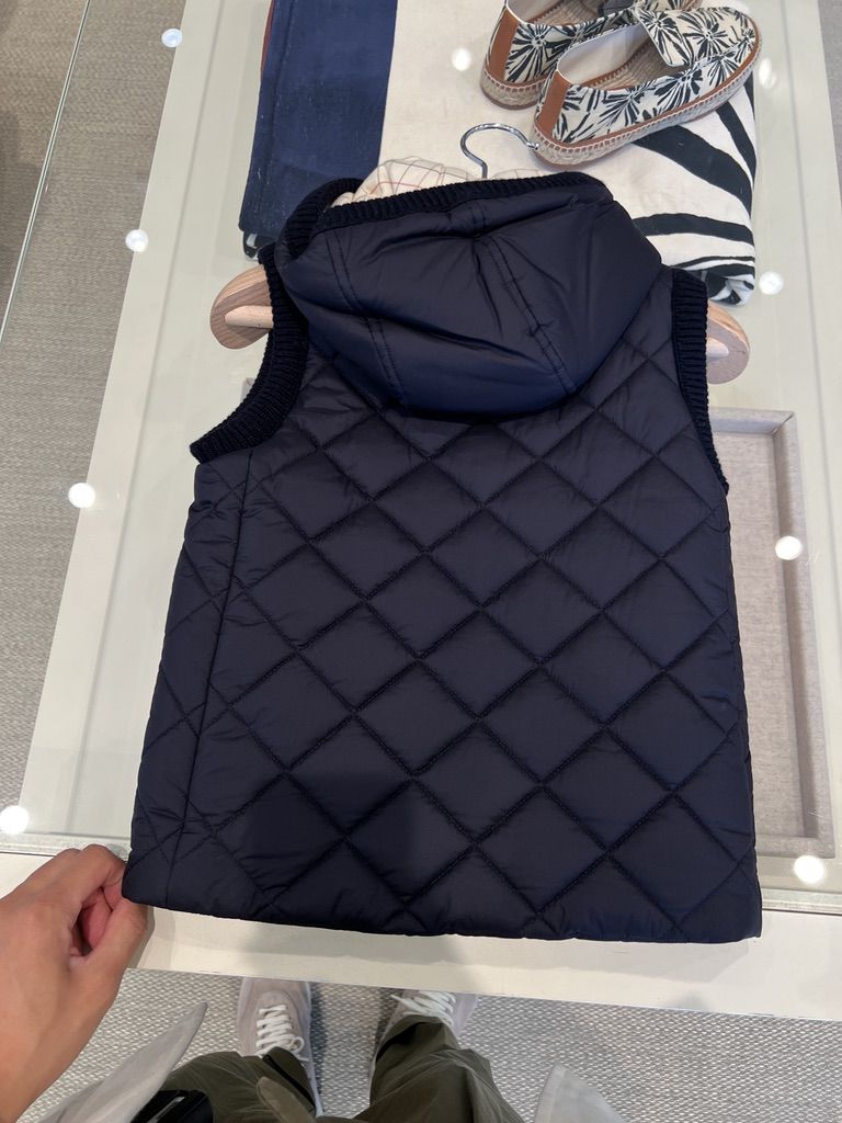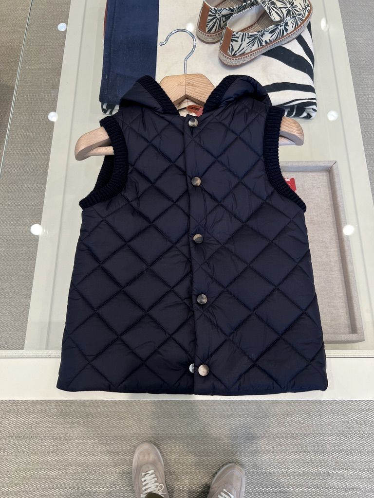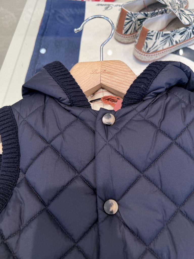 로로피아나 키즈 퀼티드 패딩 후디드 베스트 네이비