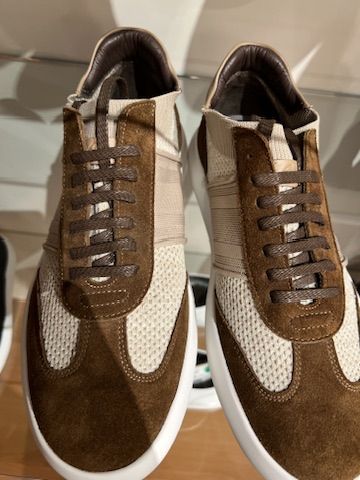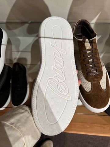 브리오니 브라운 베이지 스웨이드 니트 로우탑 스니커즈