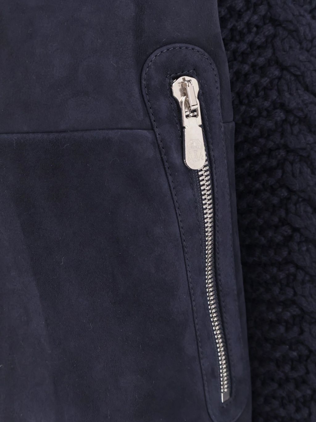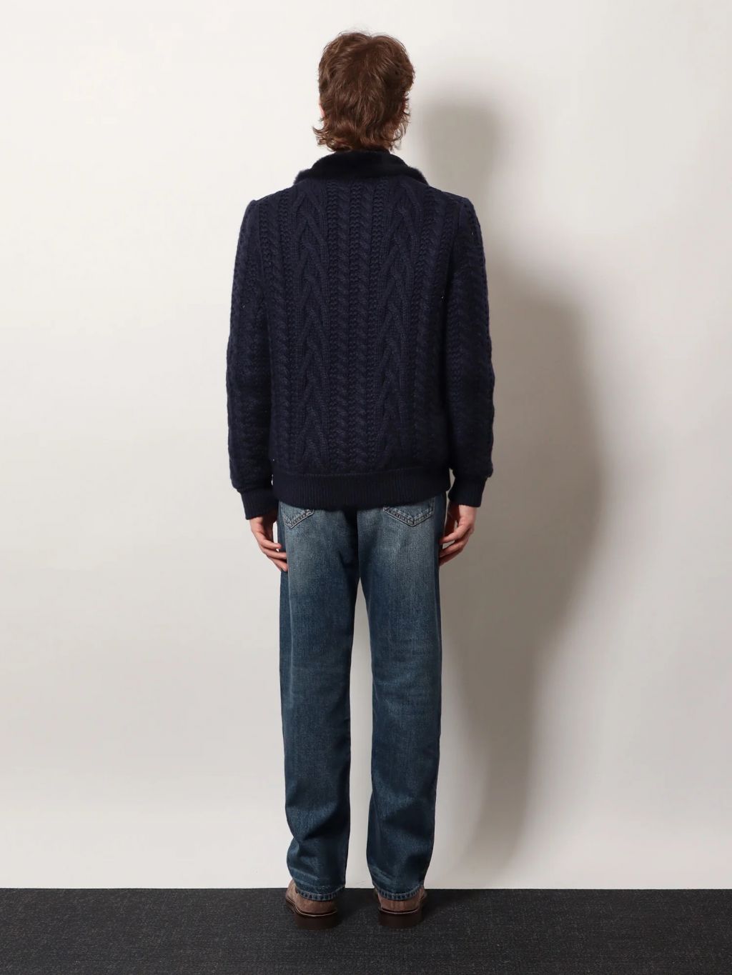 브루넬로 쿠치넬리 MPMVS2054CFN19 네이비 셔링 니트 패디드 봄버