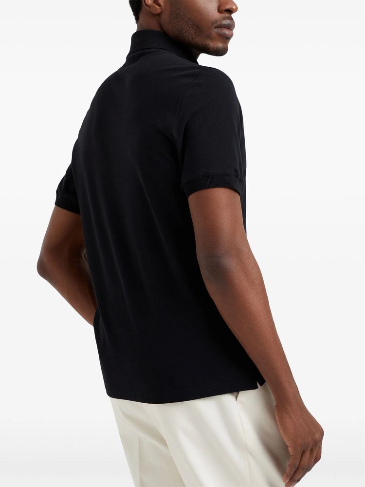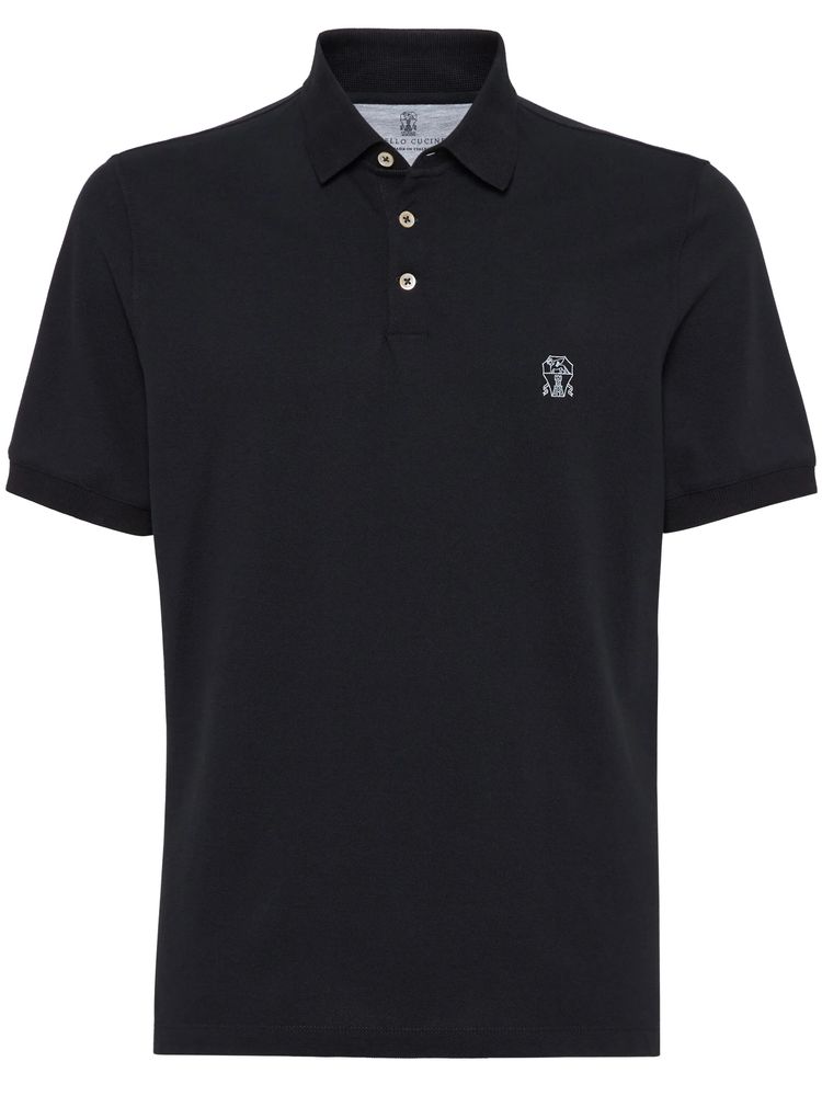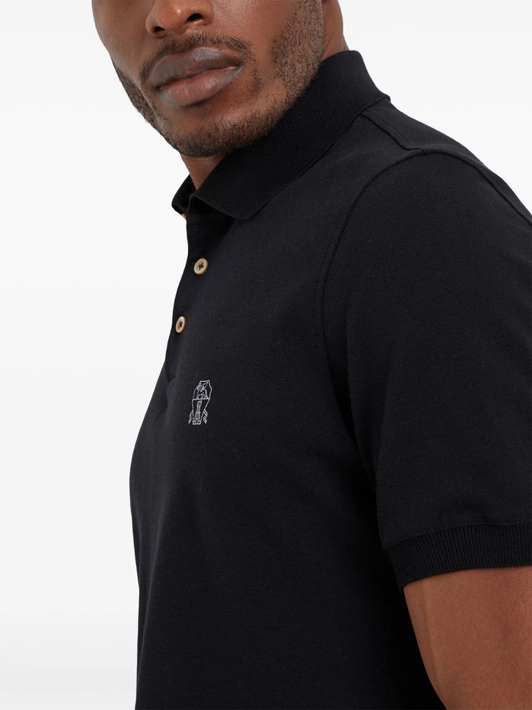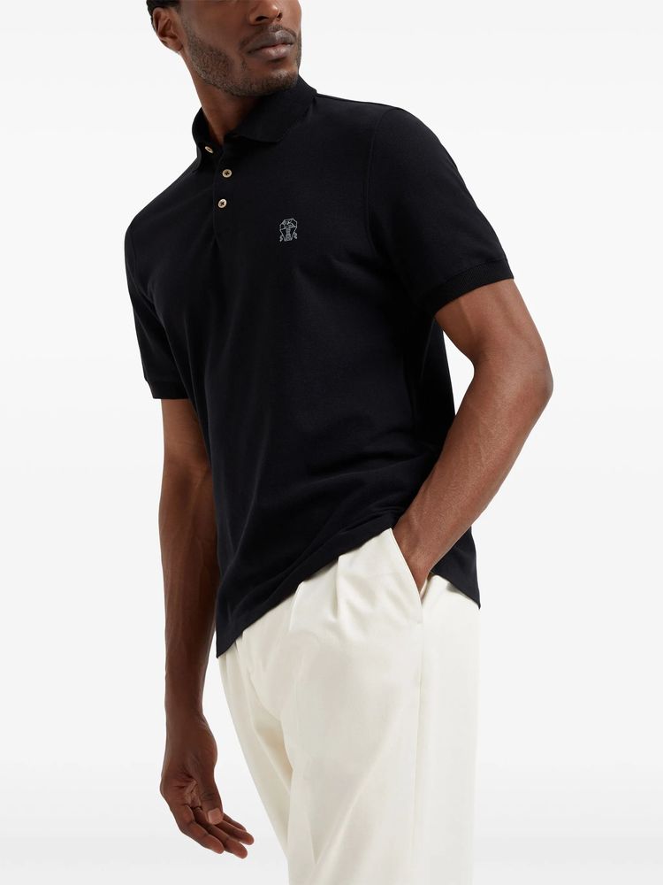 브루넬로 쿠치넬리 ME8548770 블랙 코튼 엠브로더리드 로고 폴로 셔츠