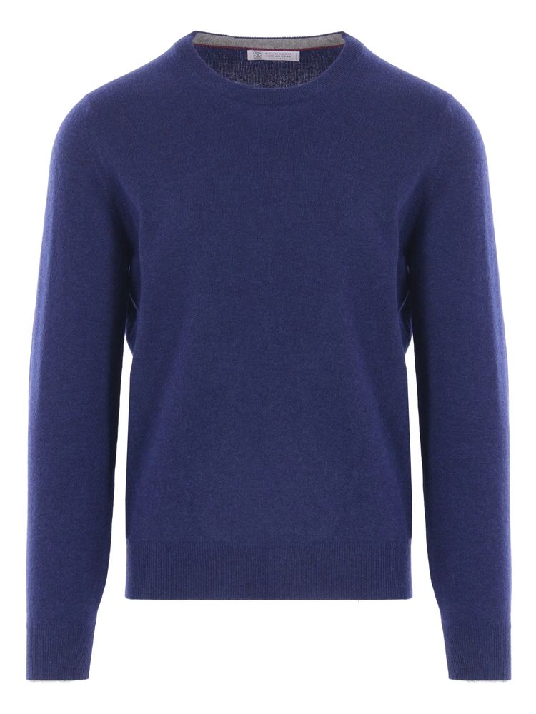 브루넬로 쿠치넬리 M2200100 블루 멜란지 캐시미어 라운드 넥 니트