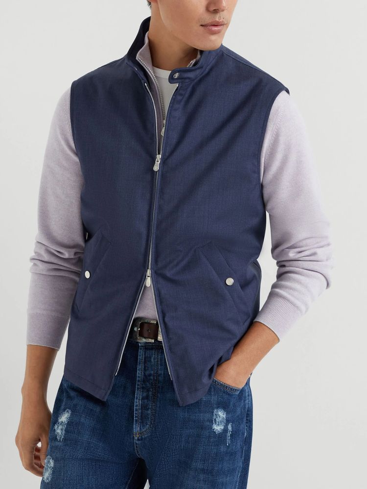 브루넬로 쿠치넬리 MM4506521 인디고 블루 버진울 플란넬 하이넥 베스트