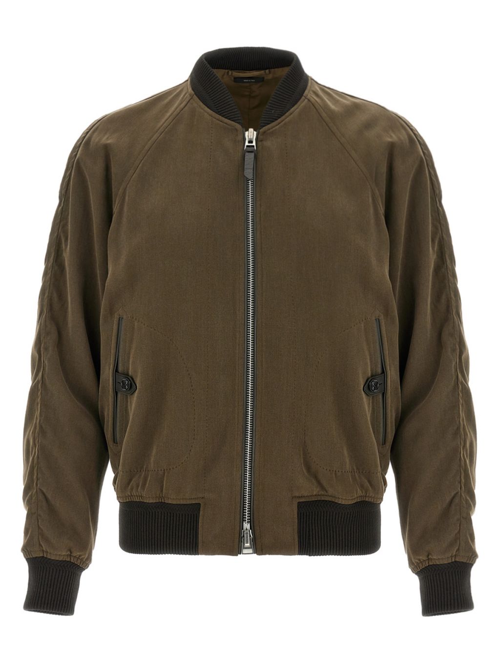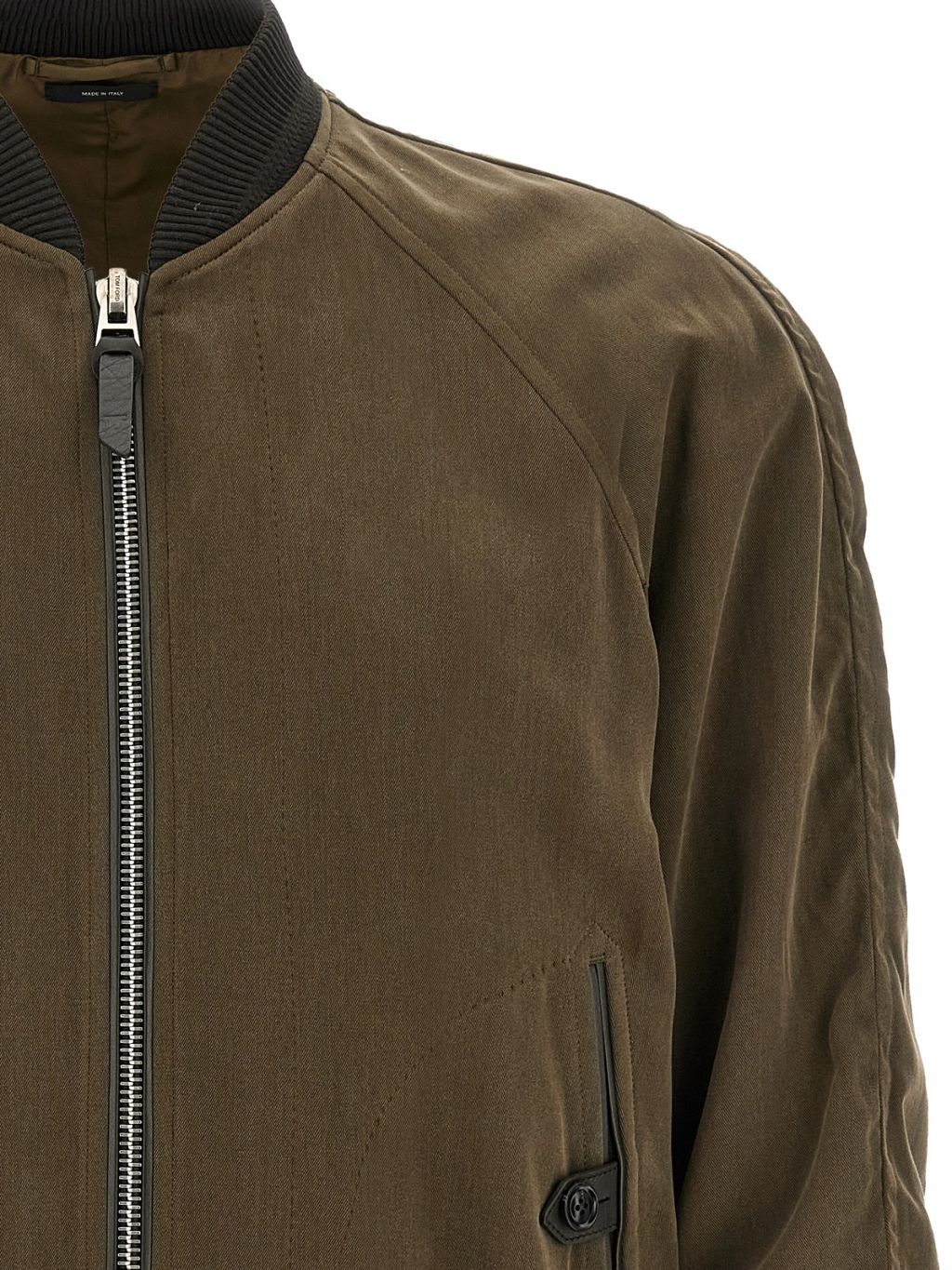 톰포드 OBS046 브라운 라이오셀 가바딘 플루이드 봄버 재킷