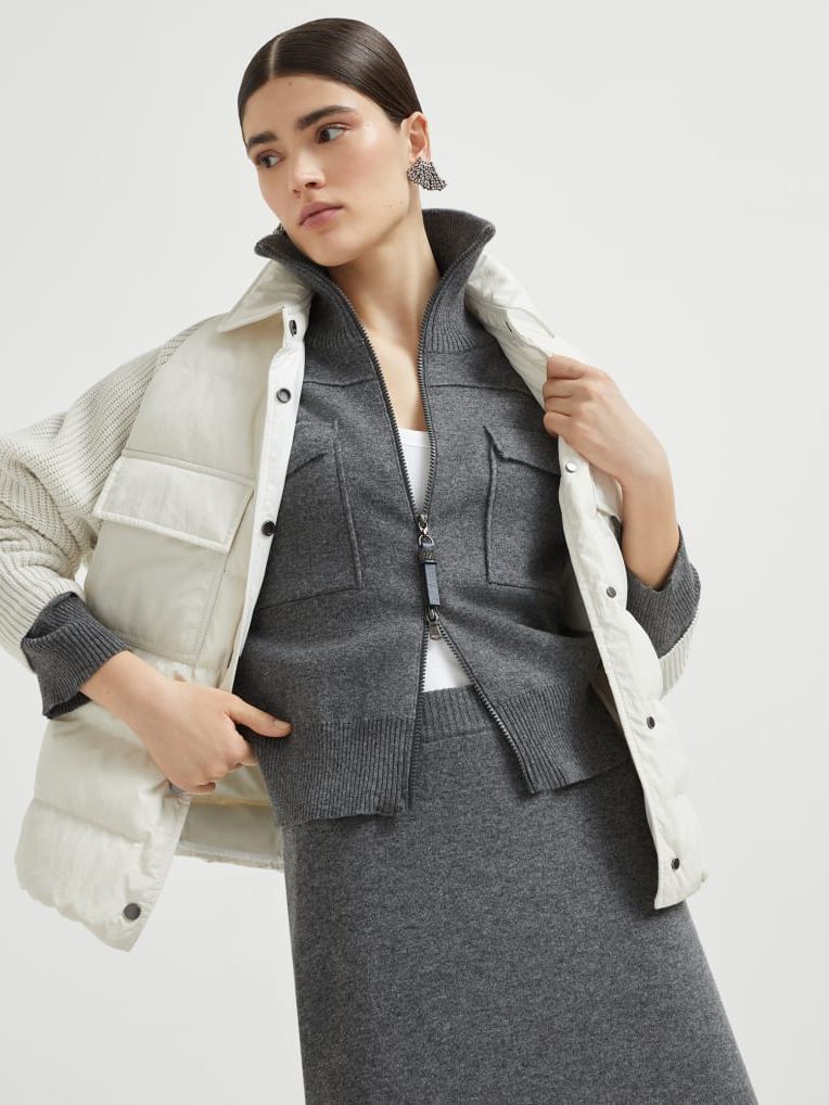 브루넬로 쿠치넬리 MD5997695P 화이트 버진 울 블렌드 클래식 카라 패디드 재킷루넬로 쿠치넬리 MD5997695P 화이트 버진 울 블렌드 클래식 카라 패디드 재킷