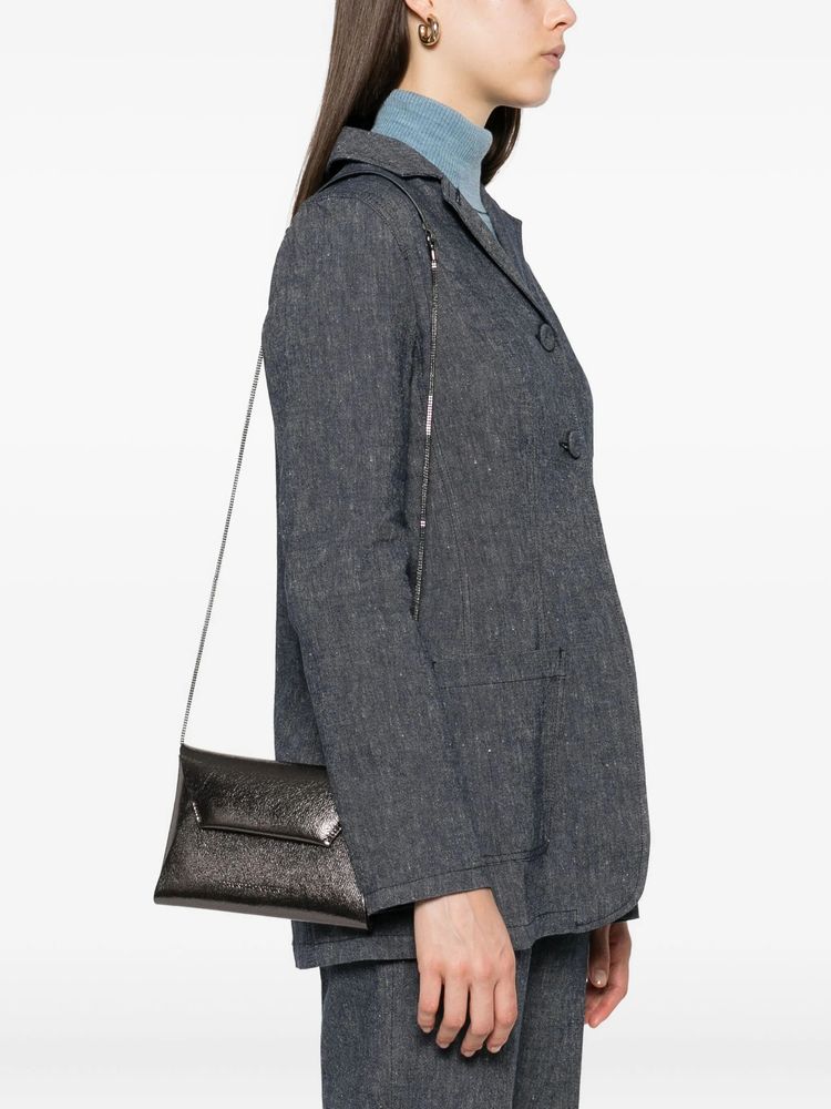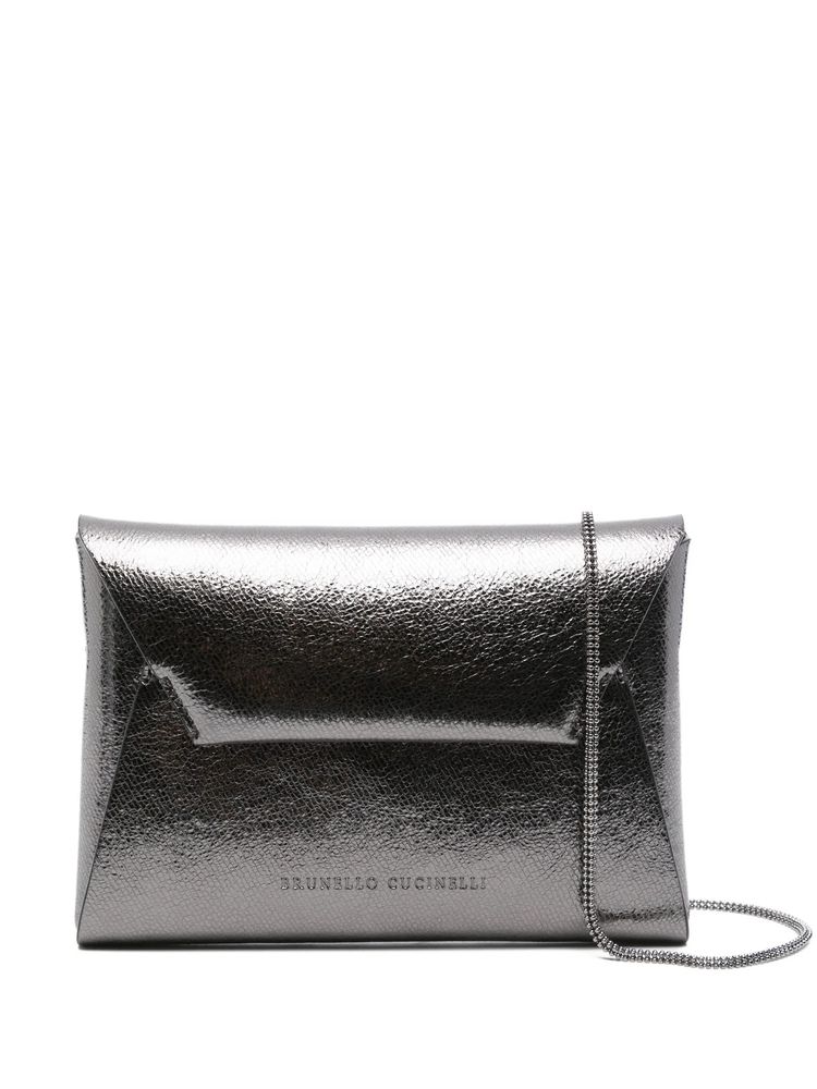 브루넬로 쿠치넬리 MWDED2722 블랙 카프 레더 메탈릭 피니쉬 체인 스트랩 클러치 백