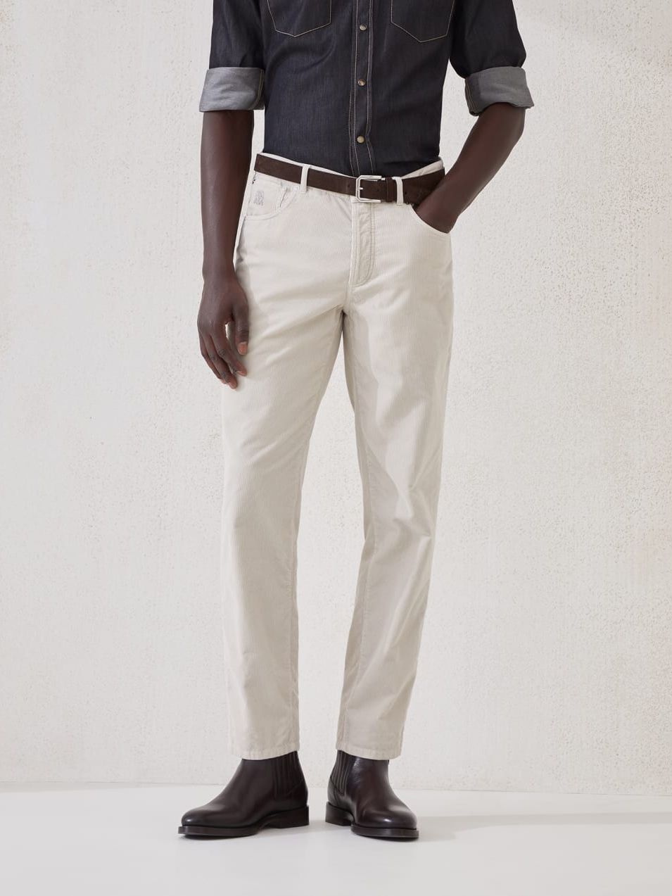 브루넬로 쿠치넬리 M279UI1780 에크루 코튼 코듀로이 이탈리안 핏 트라우저