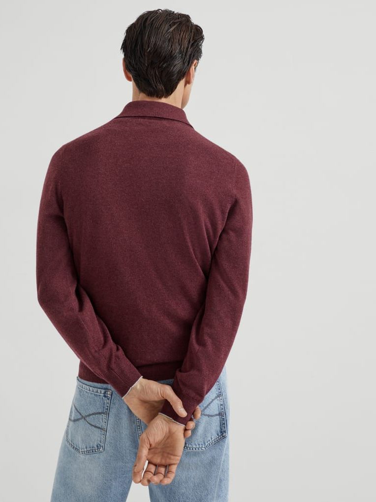 브루넬로 쿠치넬리 M2200295 버건디 캐시미어 니트 폴로 셔츠