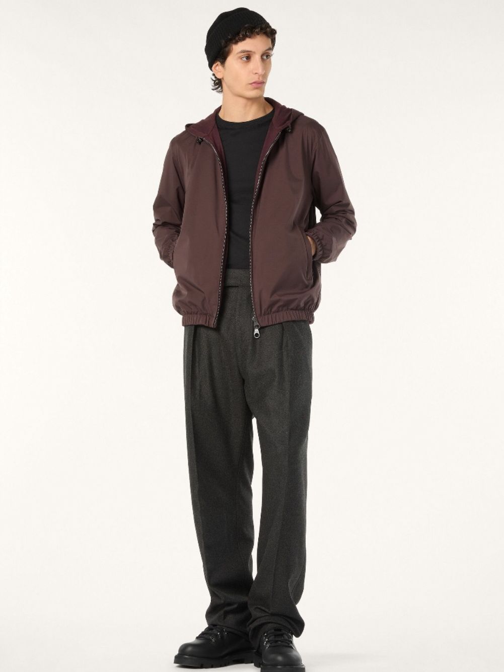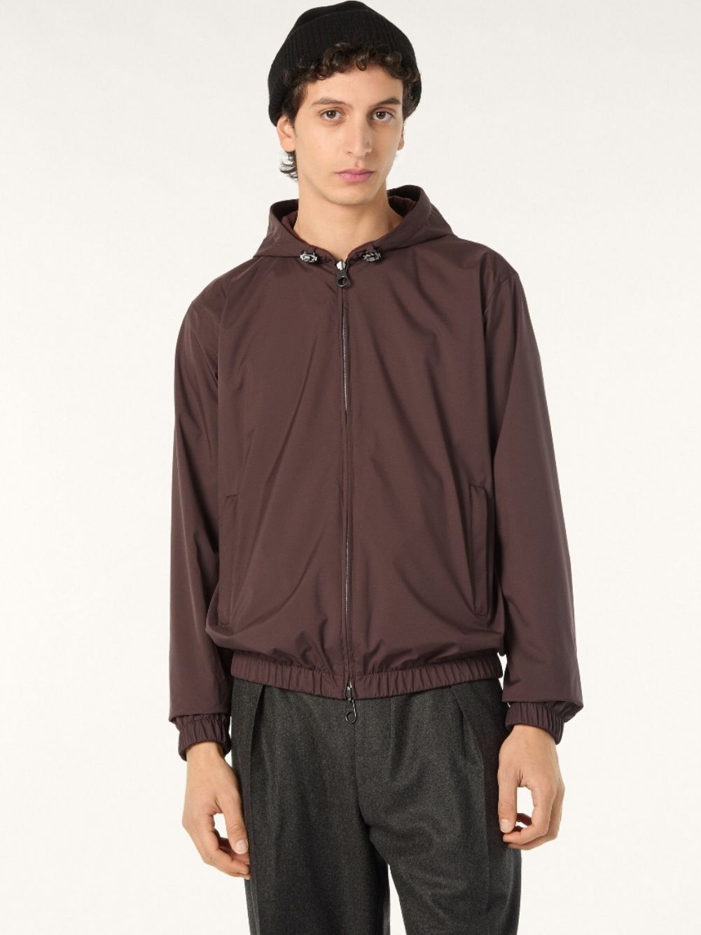 로로피아나 FAO9559 브라운 버건디 마이크로화이버 캐시미어 리버시블 스톰시스템 후드 재킷