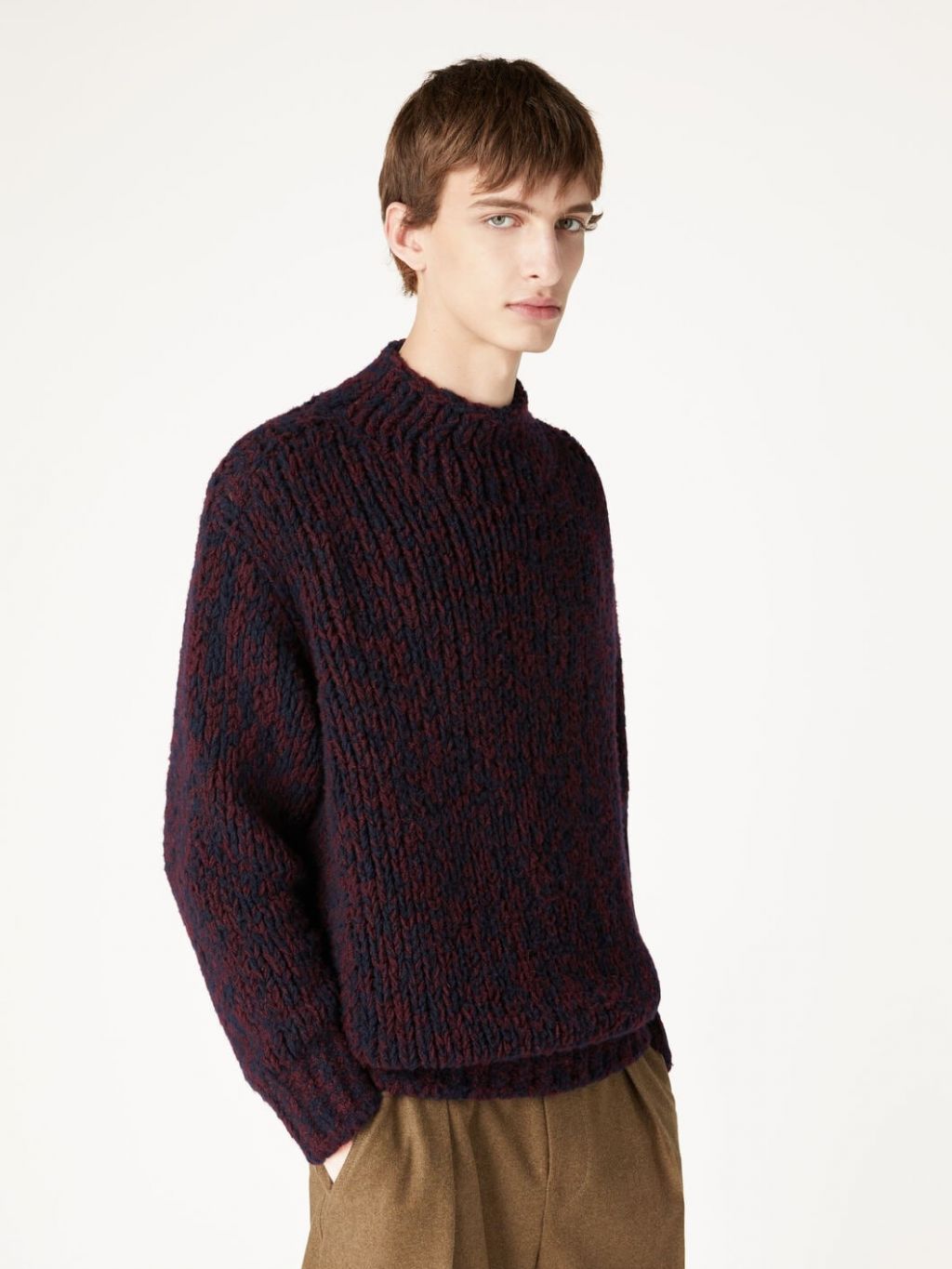 로로피아나 FAO6786 버건디 네이비 캐시 실크 바바 페레로 터틀넥 니트