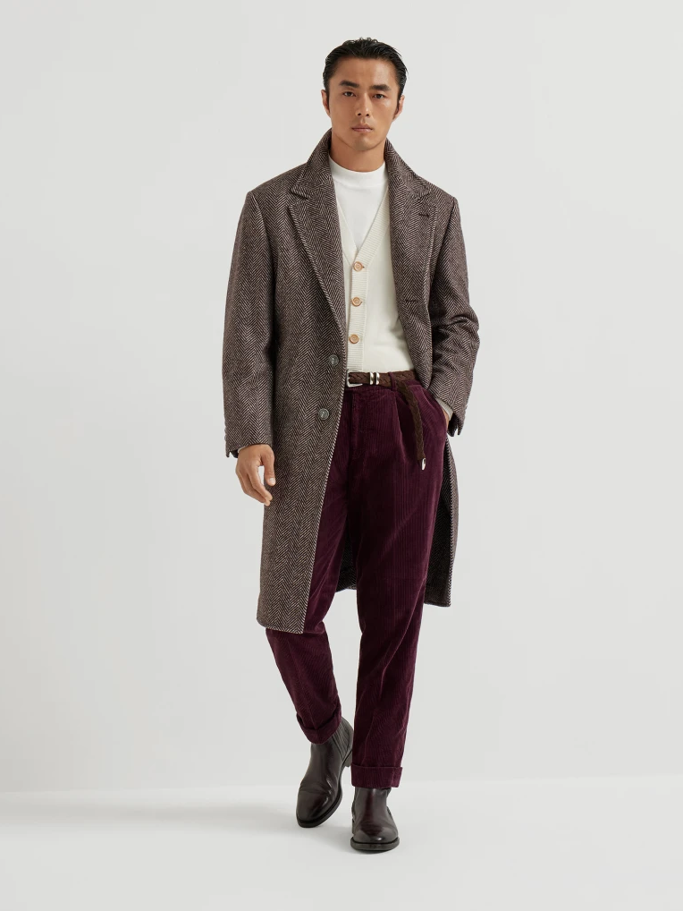 브루넬로 쿠치넬리 MV4059155K 브라운 캐시 실크 싱글 브레스티드 코트