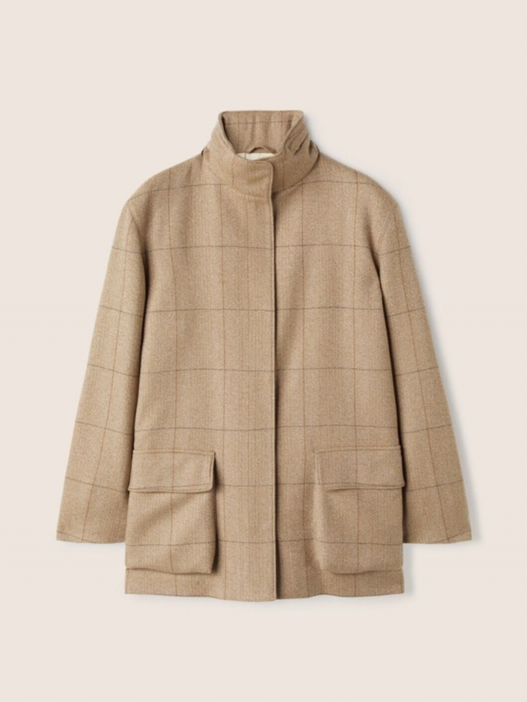 FAN5221 라이트 브라운 체비엇 울 캐시미어 오버체크 아이코닉 보이저 재킷