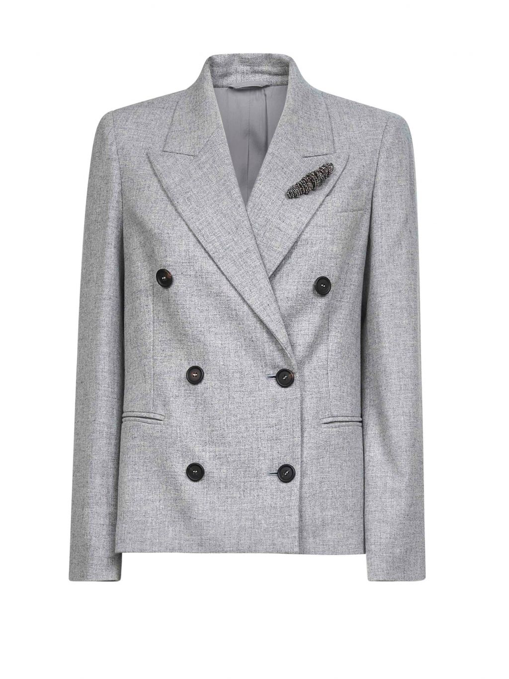 브루넬로 쿠치넬리 MB1627410 그레이 버진 울 캐시미어 플란넬 더블 브레스티드 블레이저