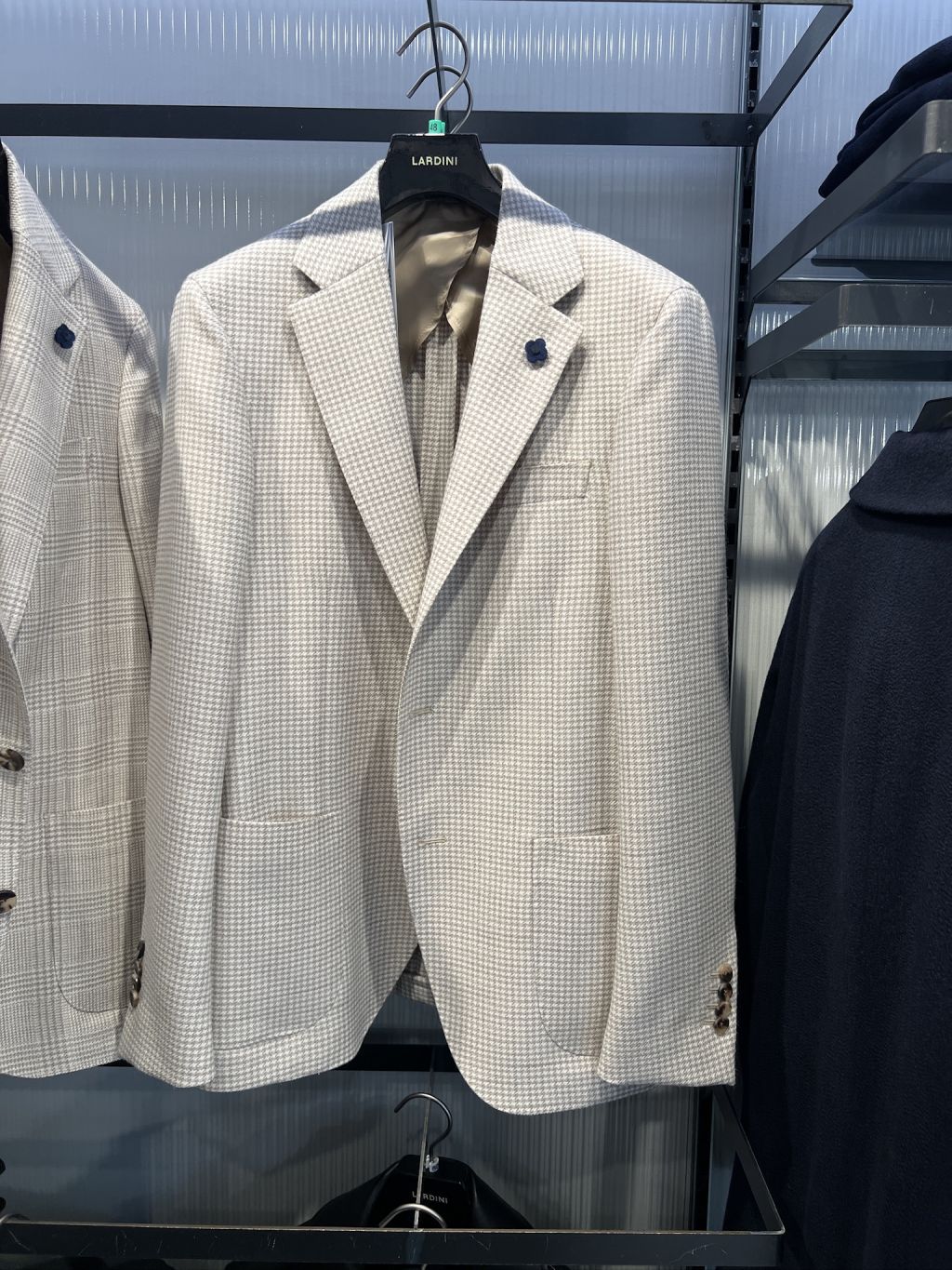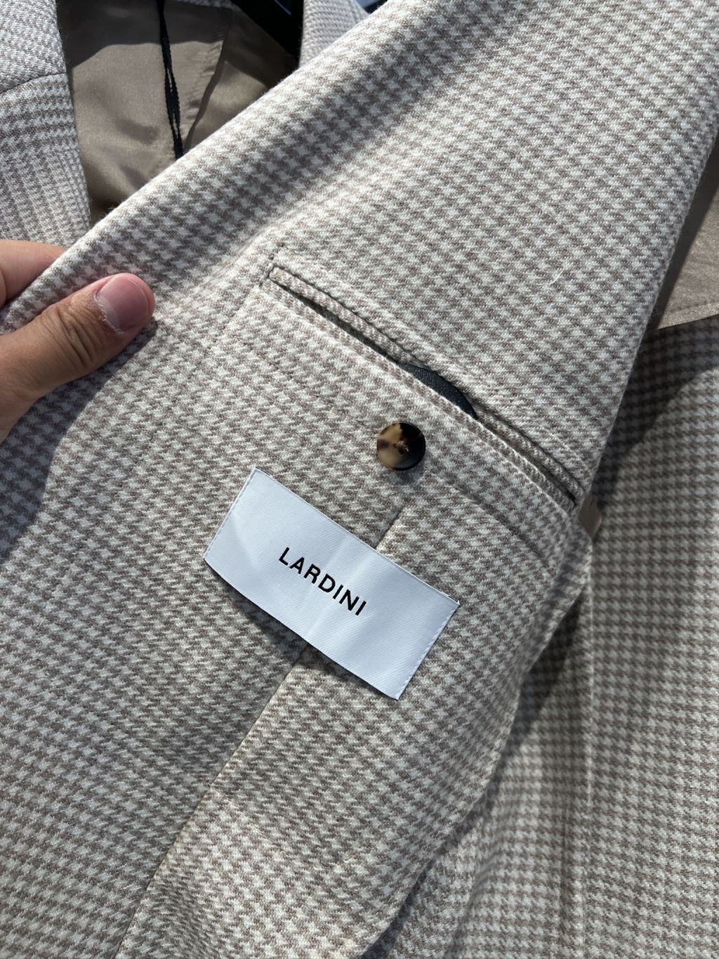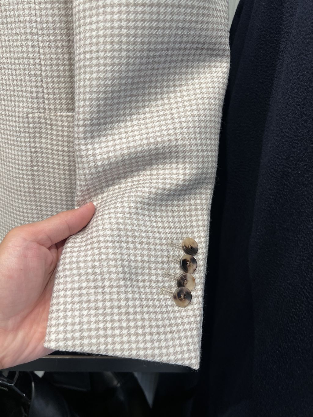 라르디니 아이보리/베이지 하운드 투스 체크 싱글 울 자켓