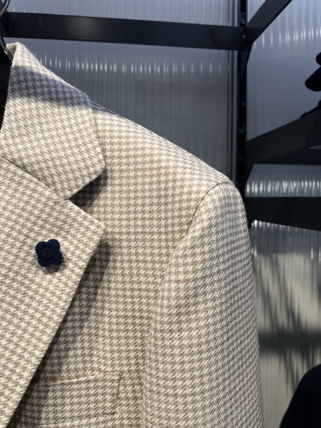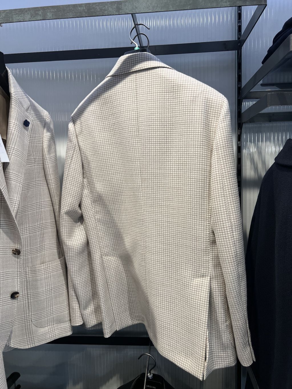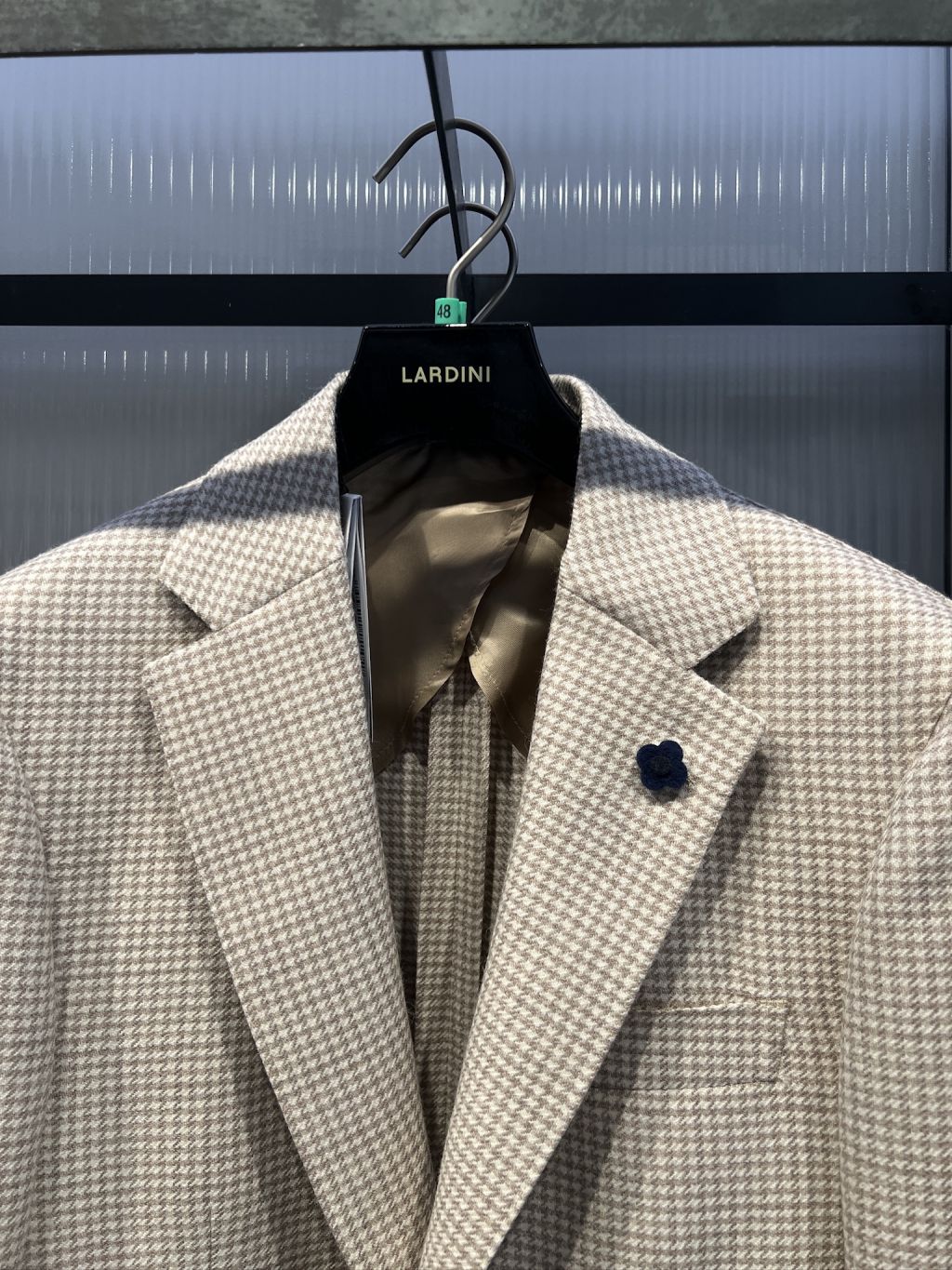 라르디니 아이보리/베이지 하운드 투스 체크 싱글 울 자켓