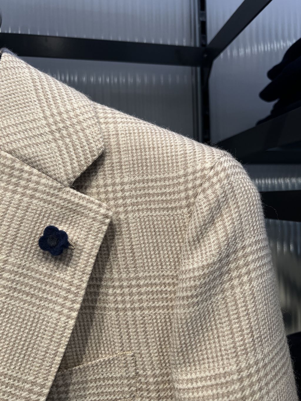 라르디니 아이보리/베이지 글렌체크 울 싱글 자켓