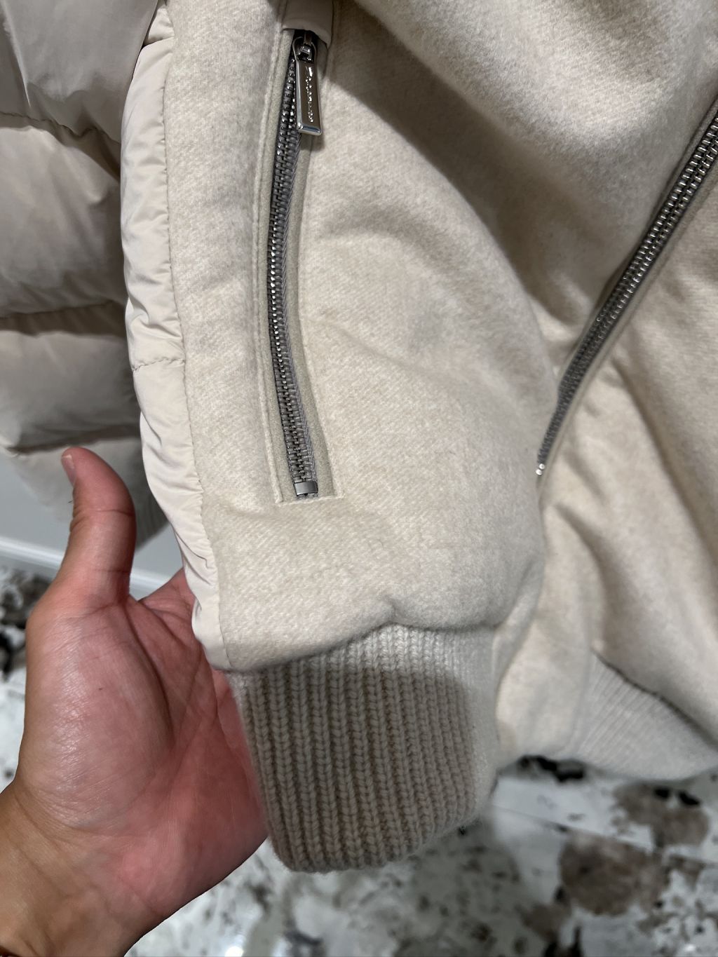 무레르 IMPERO - Y 아이보리 캐시미어 밍크퍼 카라 구스다운 봄버