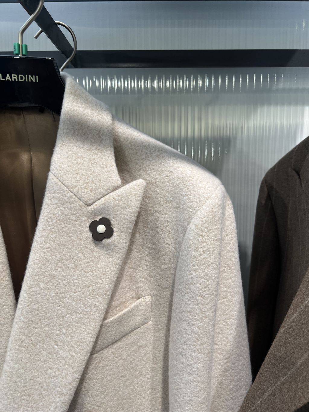 라르디니 아이보리 캐시미어 블렌드 더블 부클레 코트