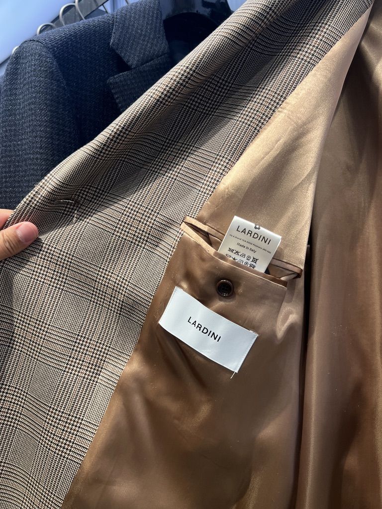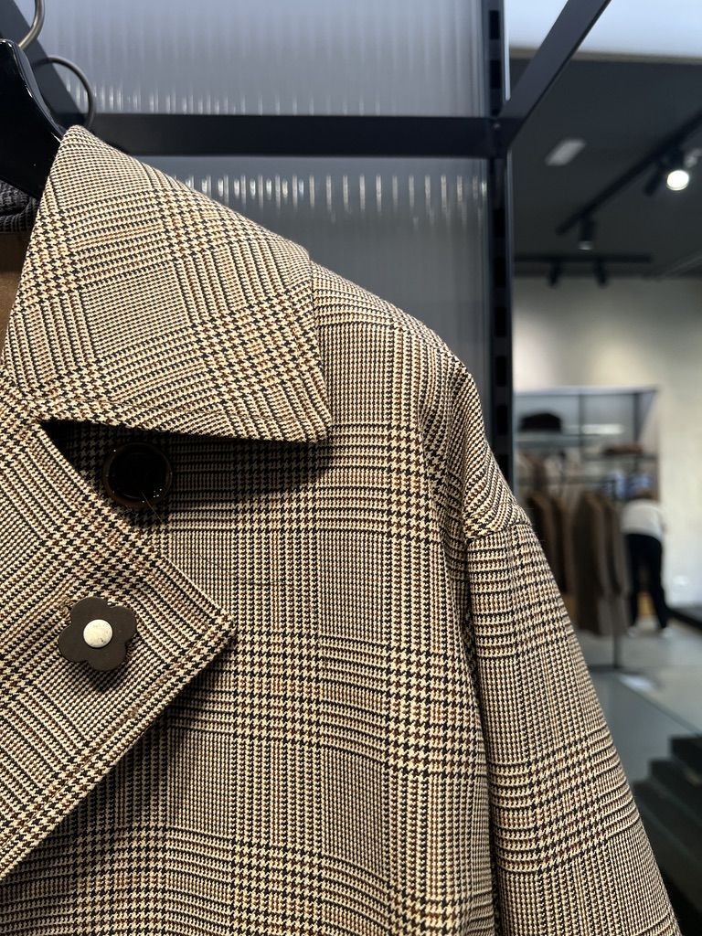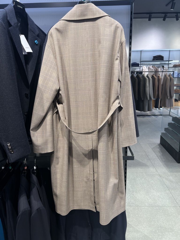 라르디니 베이지 클래식 글렌체크 울 트렌치 코트