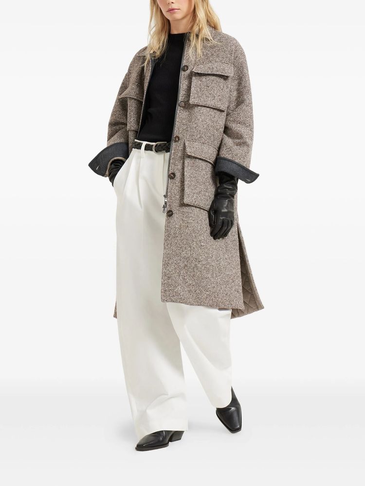 브루넬로 쿠치넬리 MG5319924 라이트 브라운 버진 울 실크 멜란지 다이애그널 모닐리 Thermore® 패딩 코트
