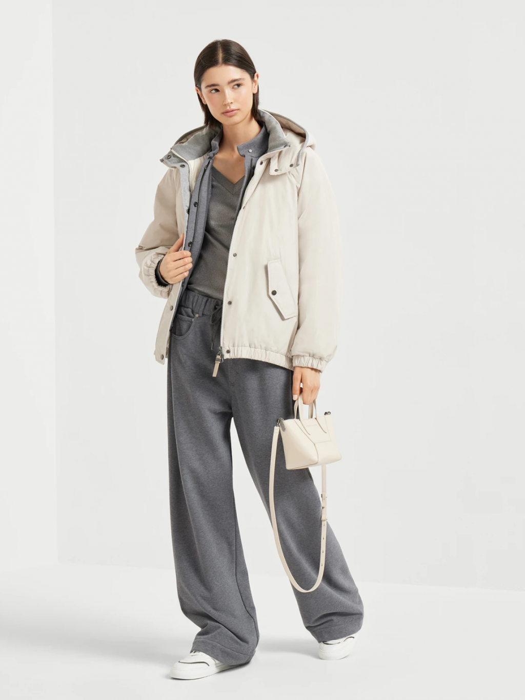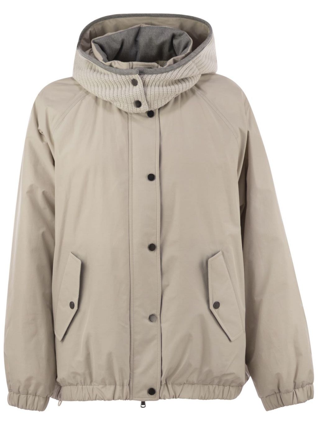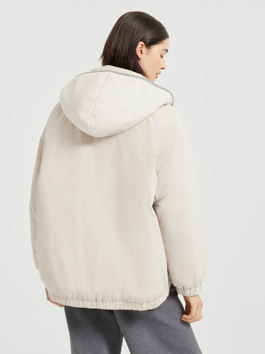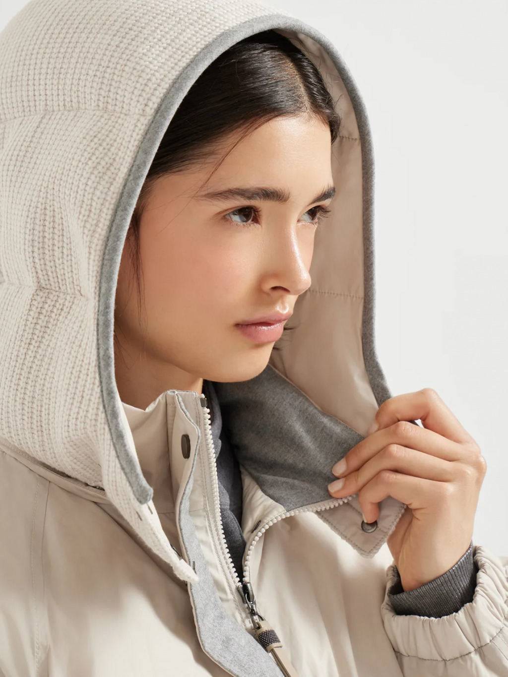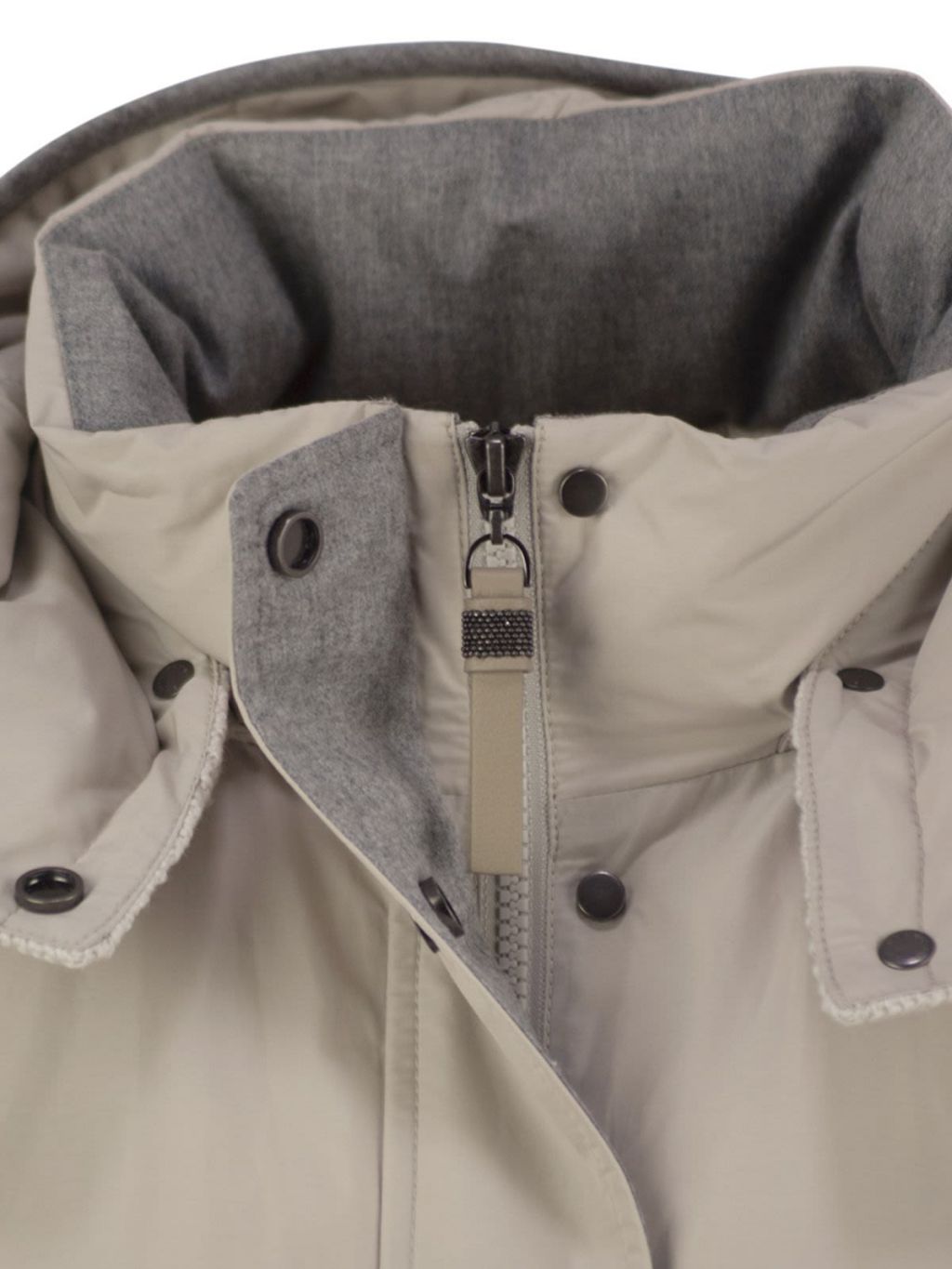 브루넬로 쿠치넬리 MG5017852 라이트 그레이 테크노 코튼 워터 리지스턴트 타페타 디태처블 후드 다운 재킷