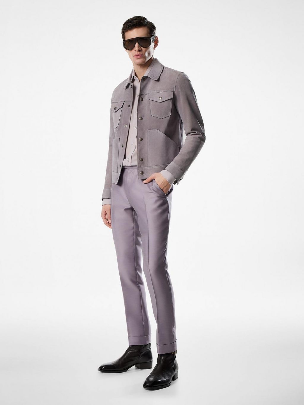 톰포드 LBI001-LMS028 페리 윙클 캐시미어 스웨이트 트러커 자켓