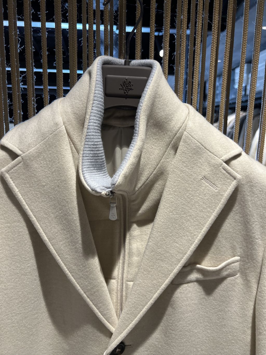 일레븐티 아이보리 울 디테처블 카라 싱글 맥 코트