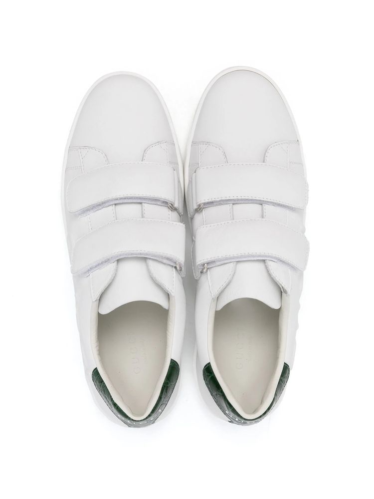 구찌 키즈 화이트 다크 그린 카프 레더 엠보싱 로고 스니커즈