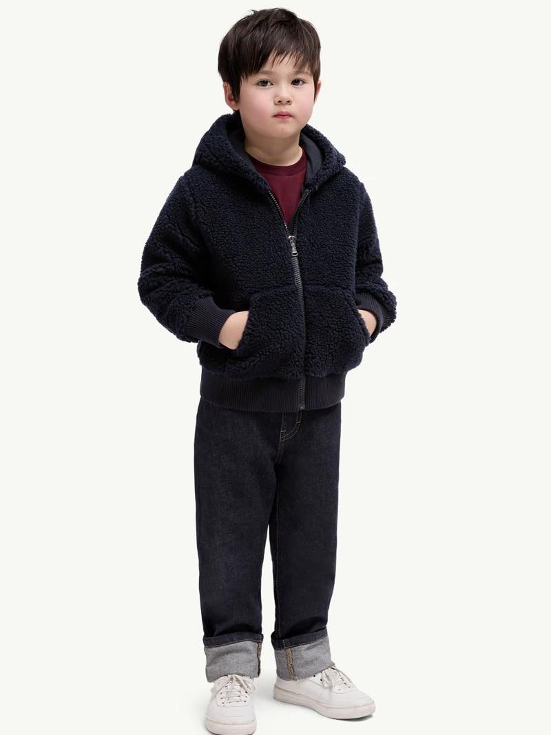 몽클레어 키즈 네이비 폴리 나일론 테디 집업 후디
