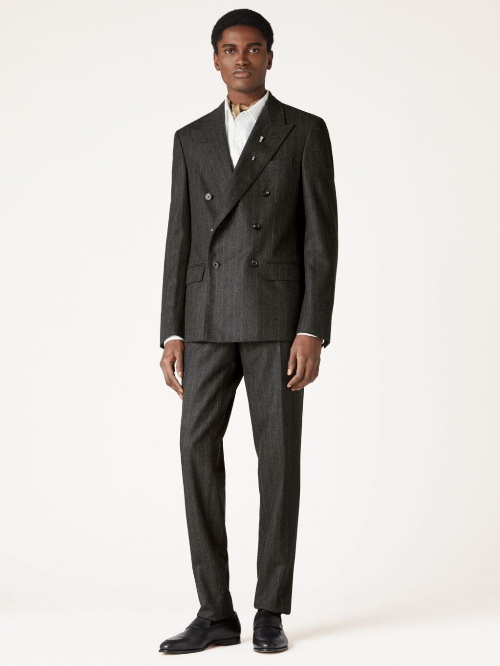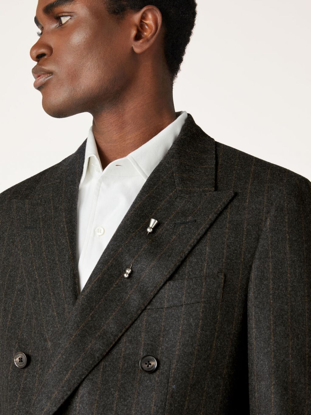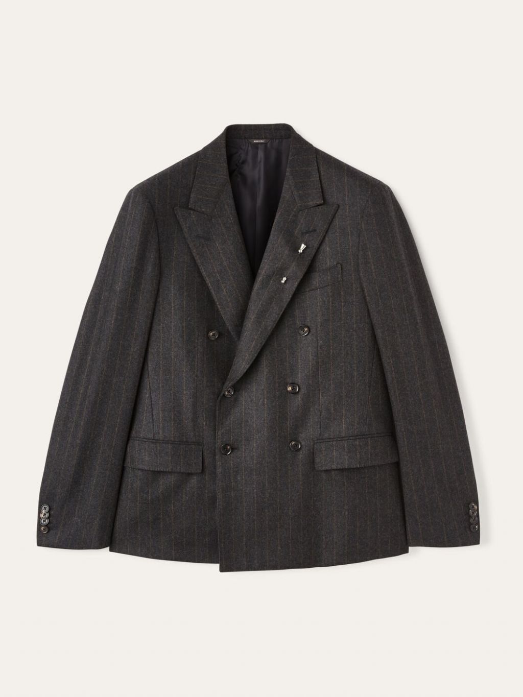 로로피아나 FAO6538 다크 그레이 버진 울 캐시미어 더블 브레스티드 밀라노 자켓