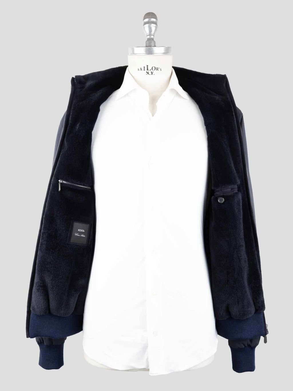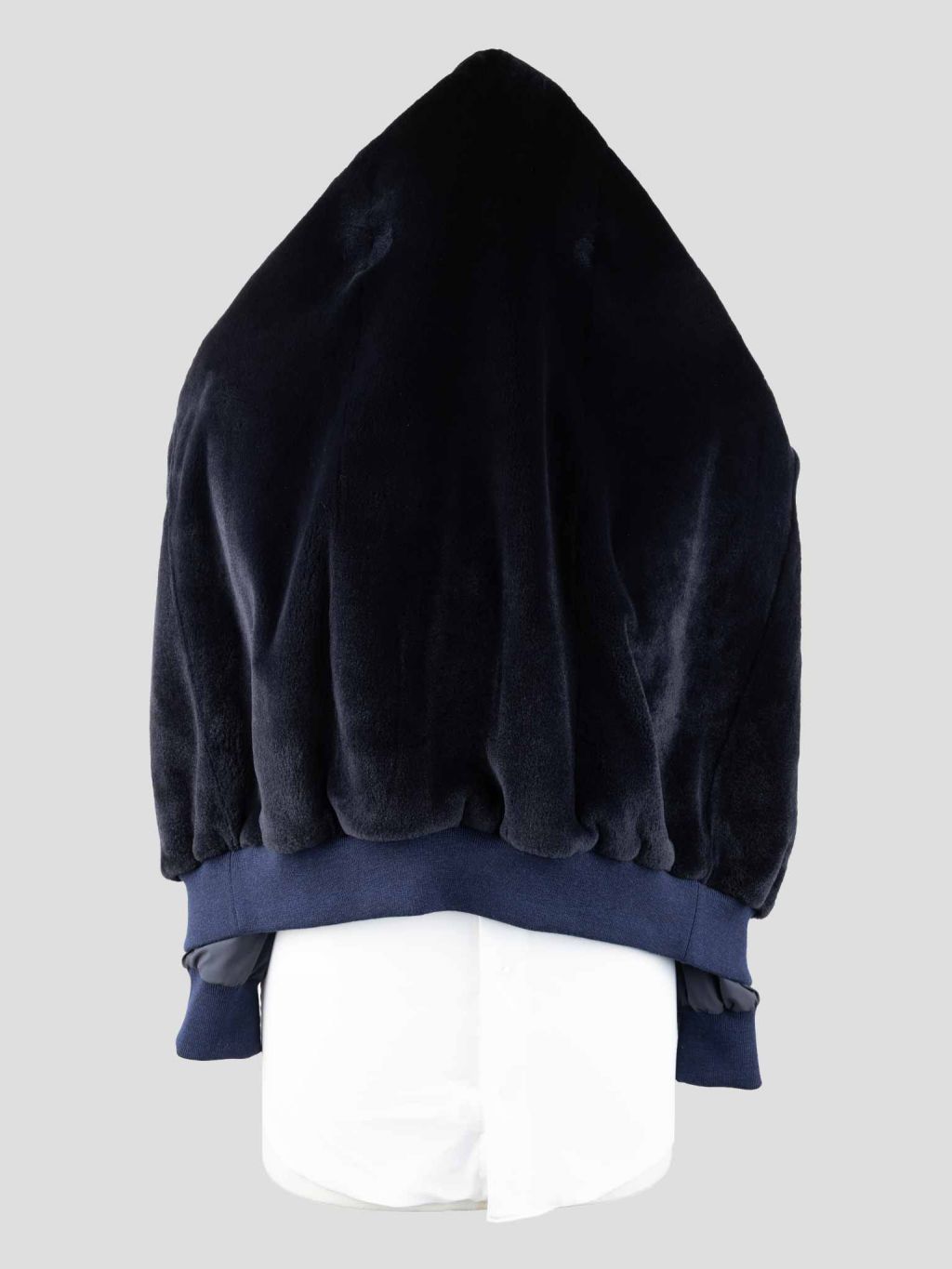 체사레 아톨리니 OU225E03B31 네이비 폴리에스터 밍크 퍼 봄버