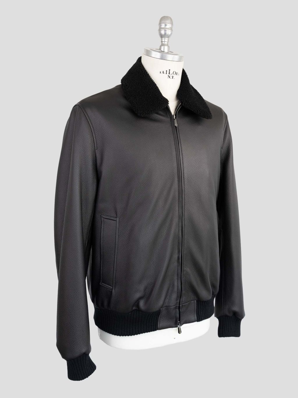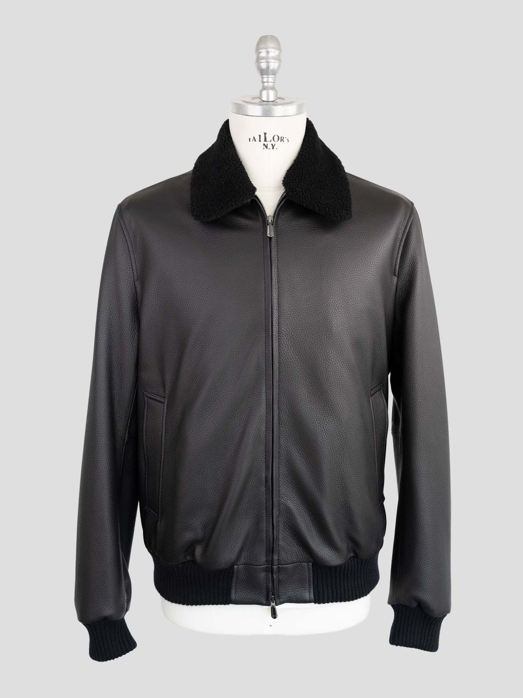 체사레 아톨리니 LT225F01D31 블랙 레더 셔링 카라 봄버