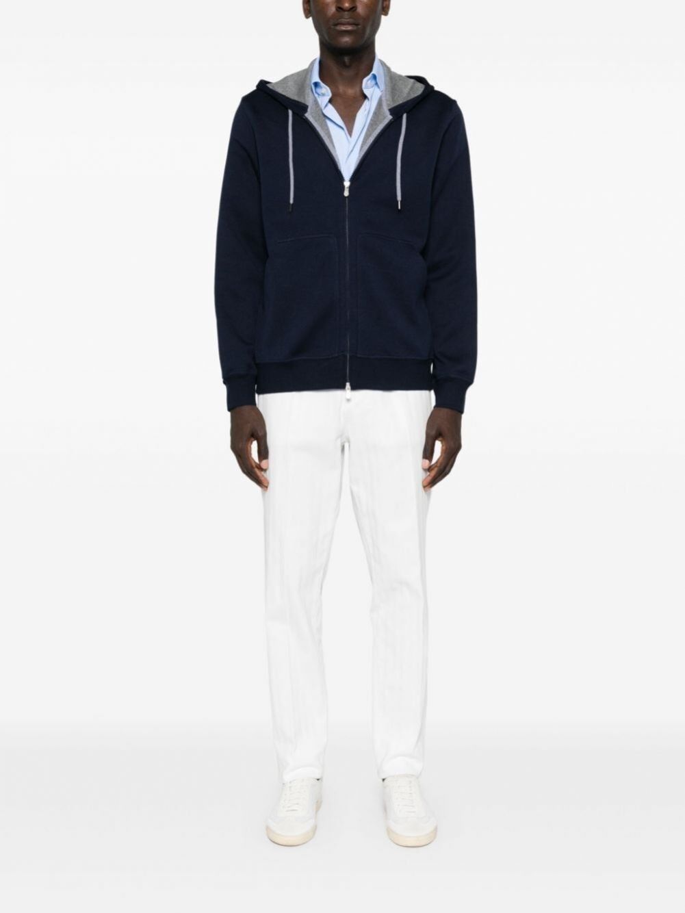 브루넬로 쿠치넬리 MM8319069G 코발트 코튼 나일론 캐시미어 더블 페이스 스웨트 집업 후디