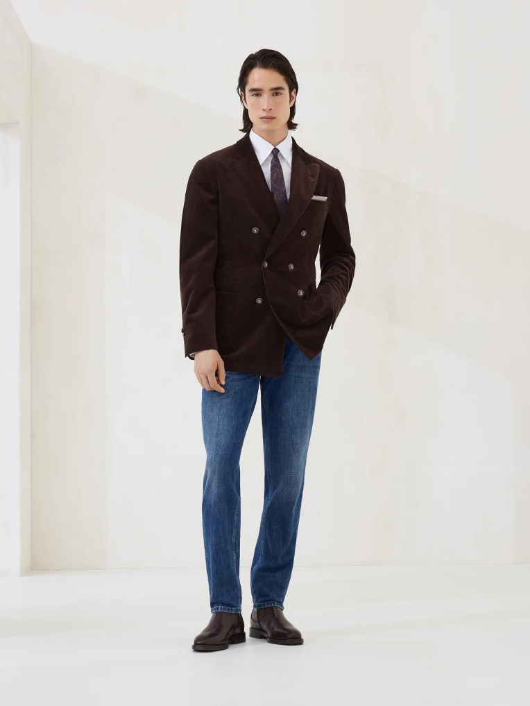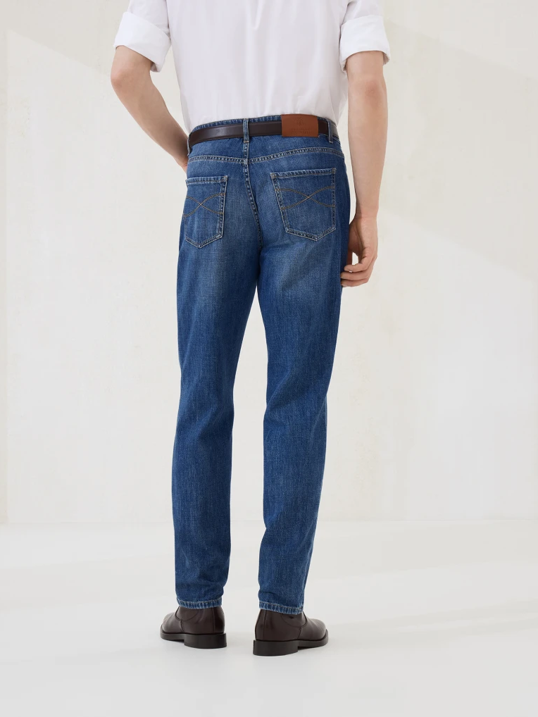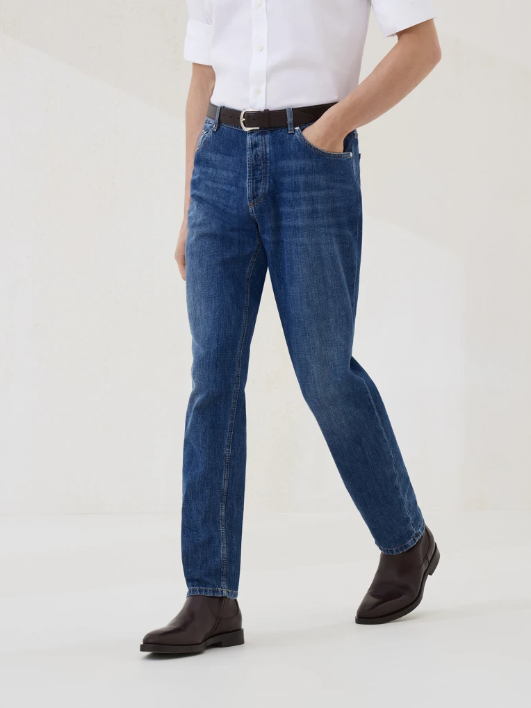 브루넬로 쿠치넬리 M0Z37D3210 미디엄 블루 코튼 트래디셔널 핏 라이트웨이트 데님 팬츠