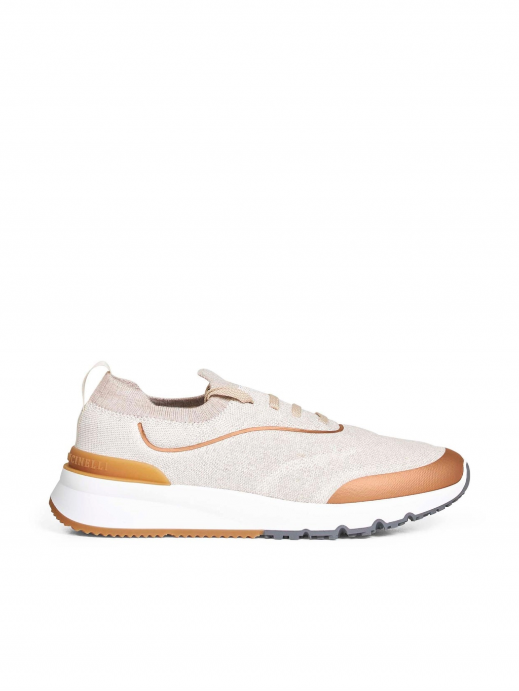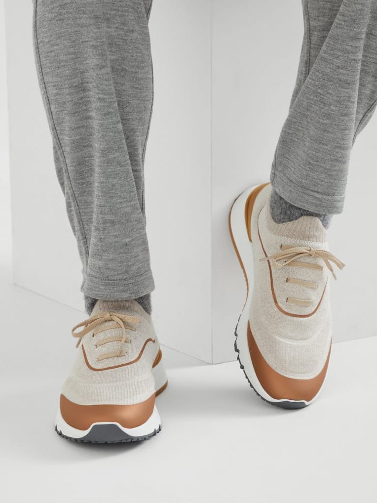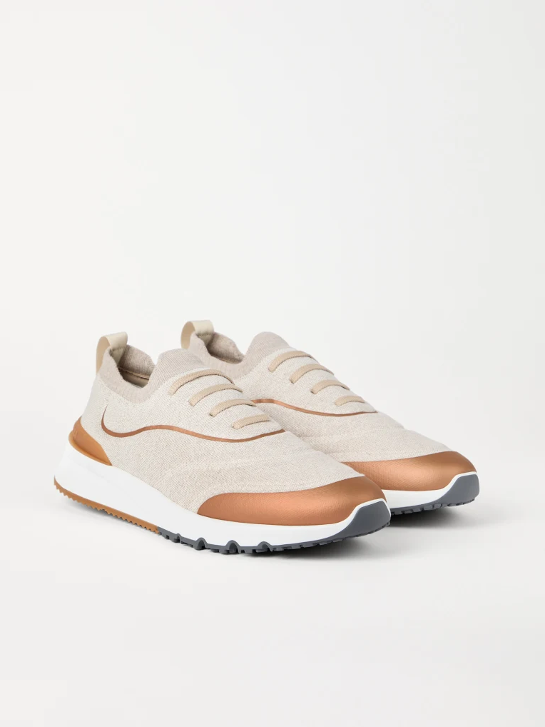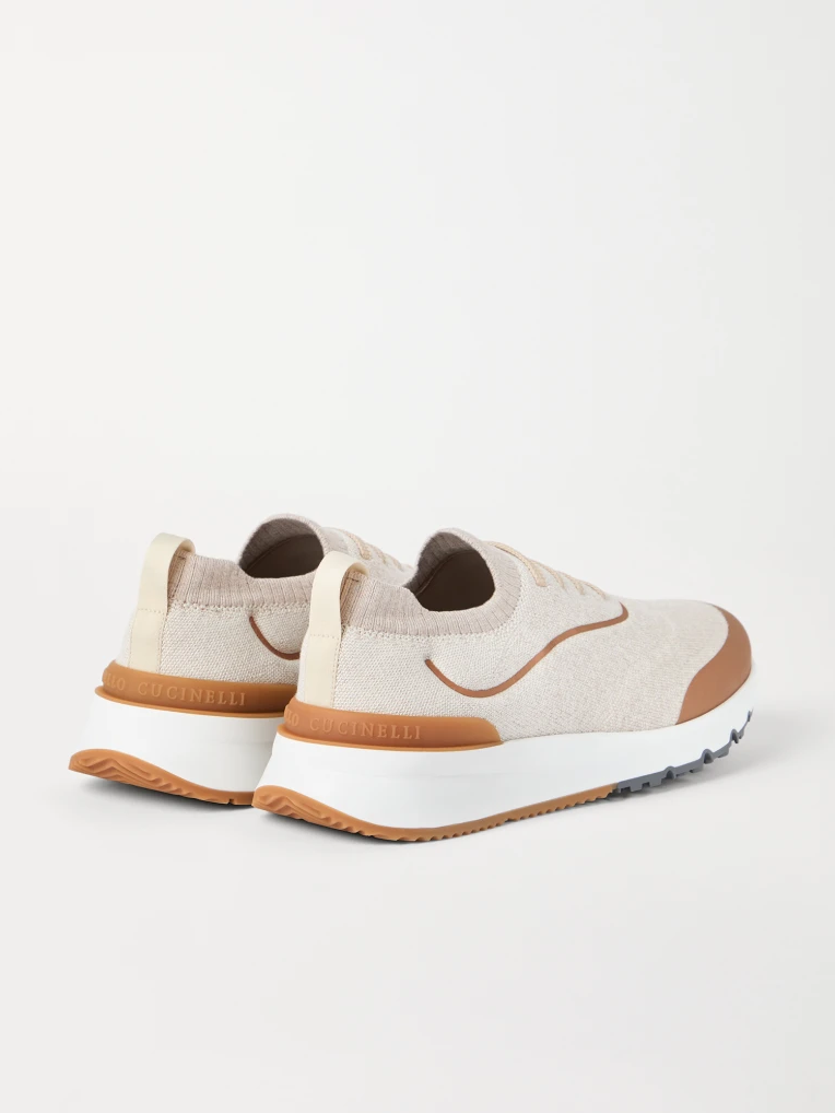 브루넬로 쿠치넬리 MZUEHRO342 에크루 테크노 코튼 히트 본디드 디테일 니트 러너 스니커즈
