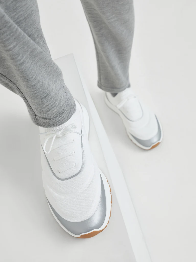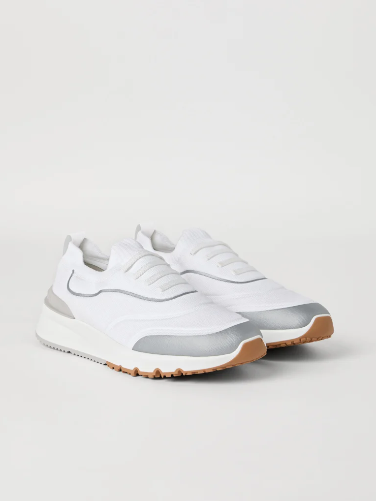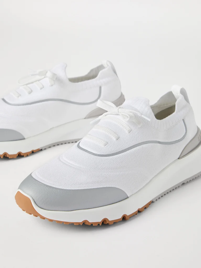 브루넬로 쿠치넬리 MZUAUFO340 화이트 테크노 코튼 히트 본디드 디테일 니트 러너 스니커즈