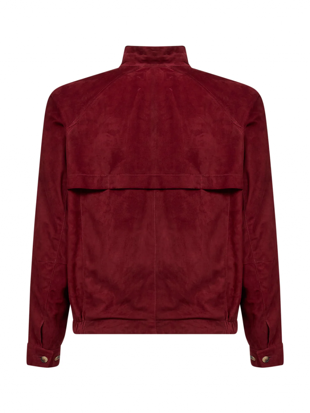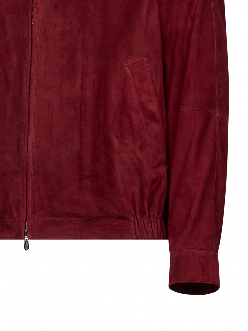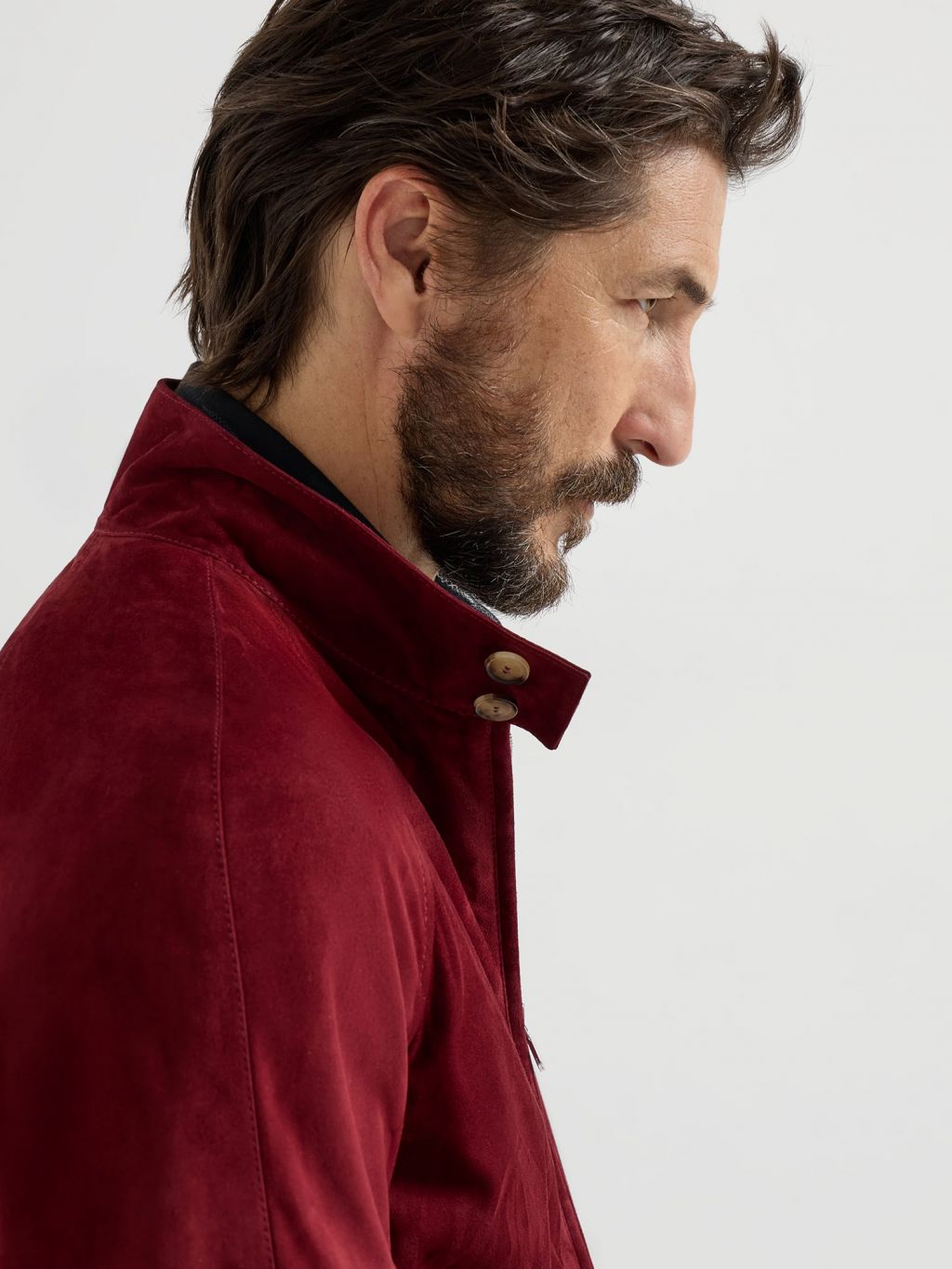 브루넬로 쿠치넬리 MPCFN2065 체리 스웨이드 언라인드 스탠드 카라 재킷