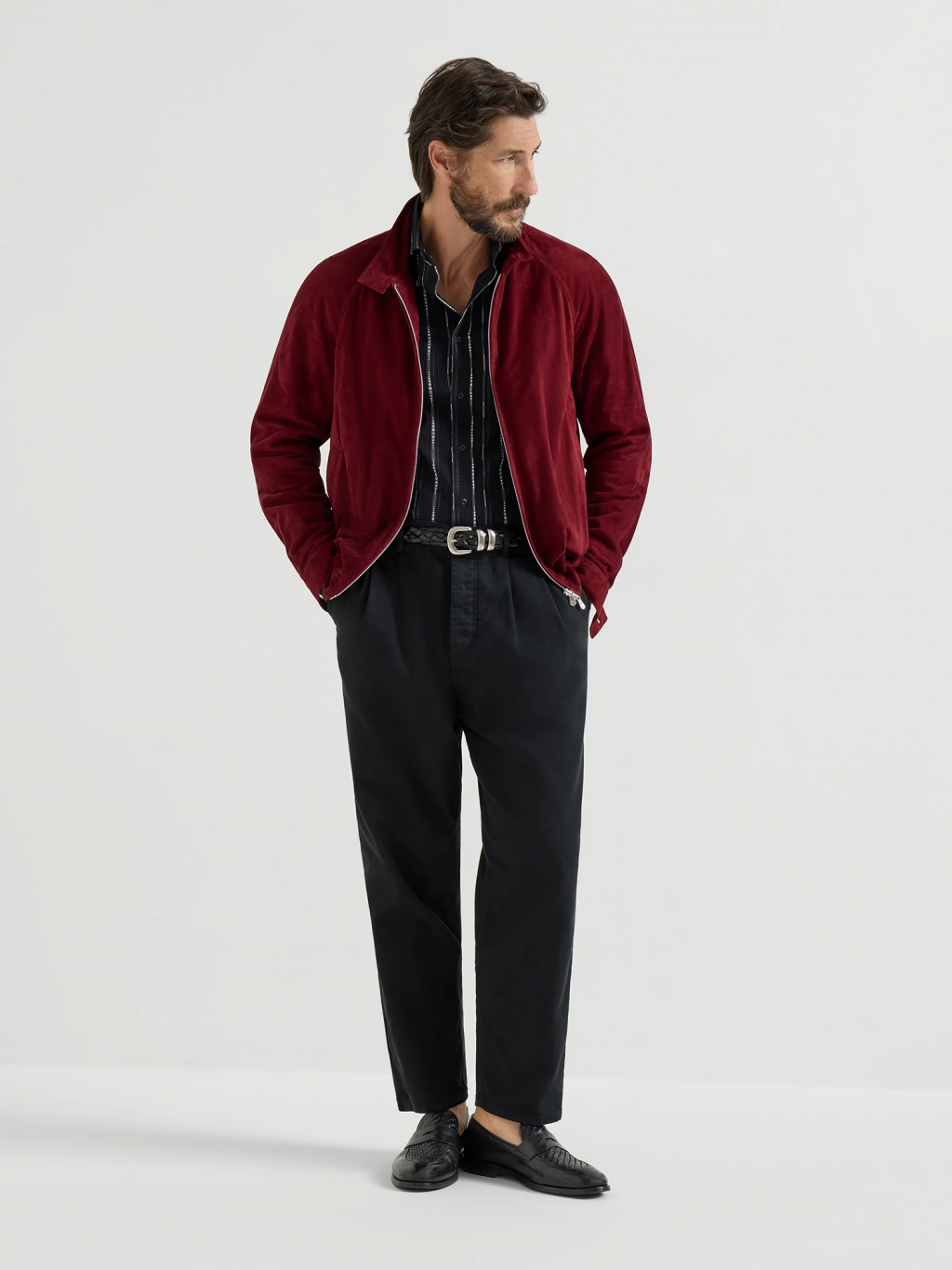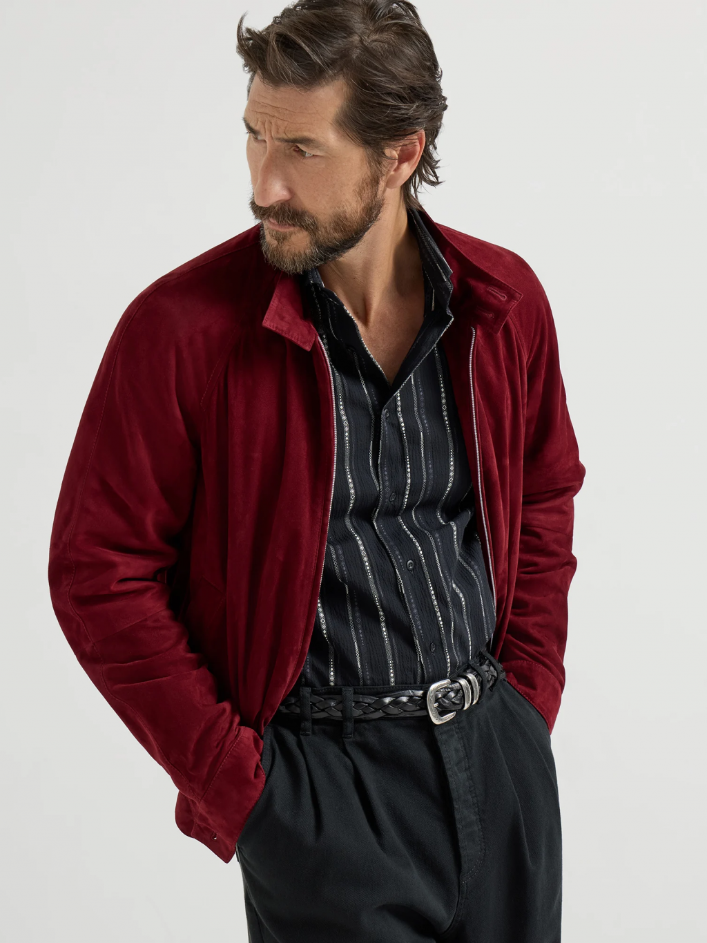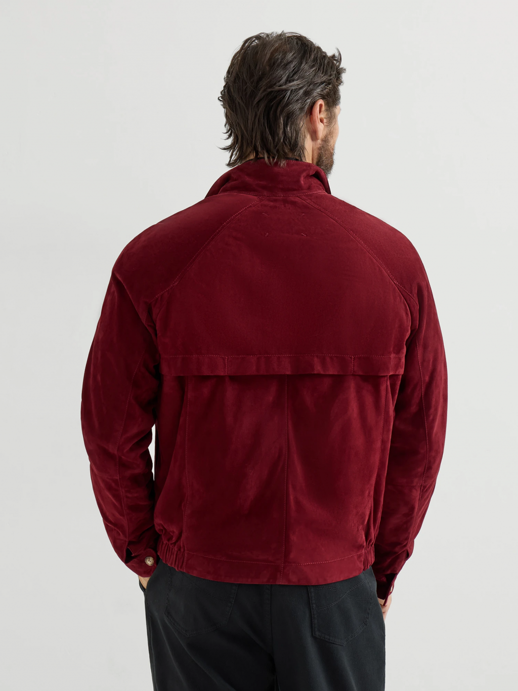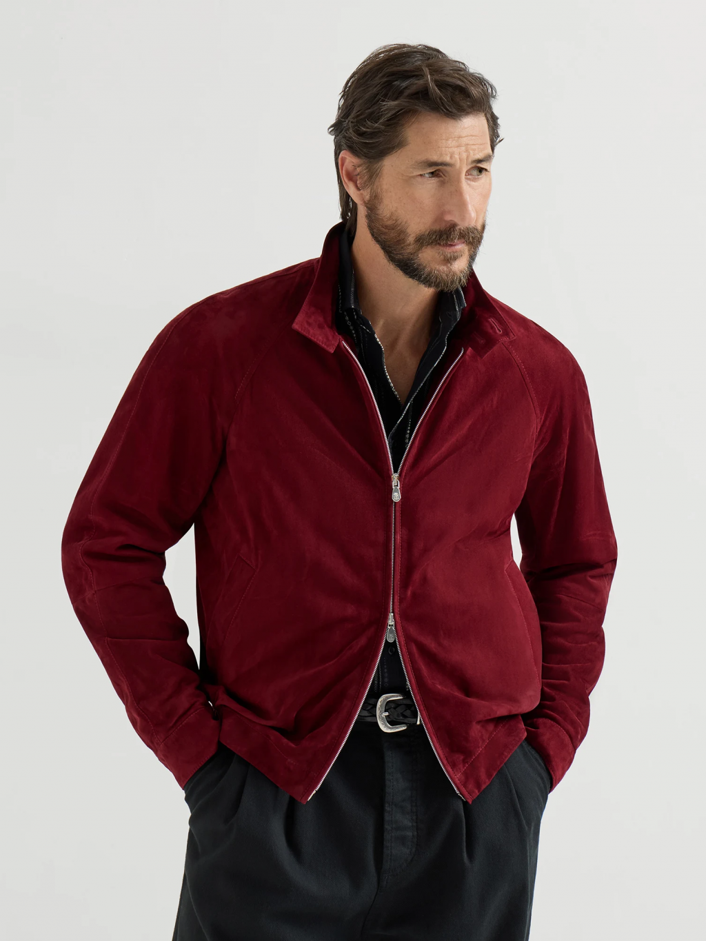 브루넬로 쿠치넬리 MPCFN2065 체리 스웨이드 언라인드 스탠드 카라 재킷