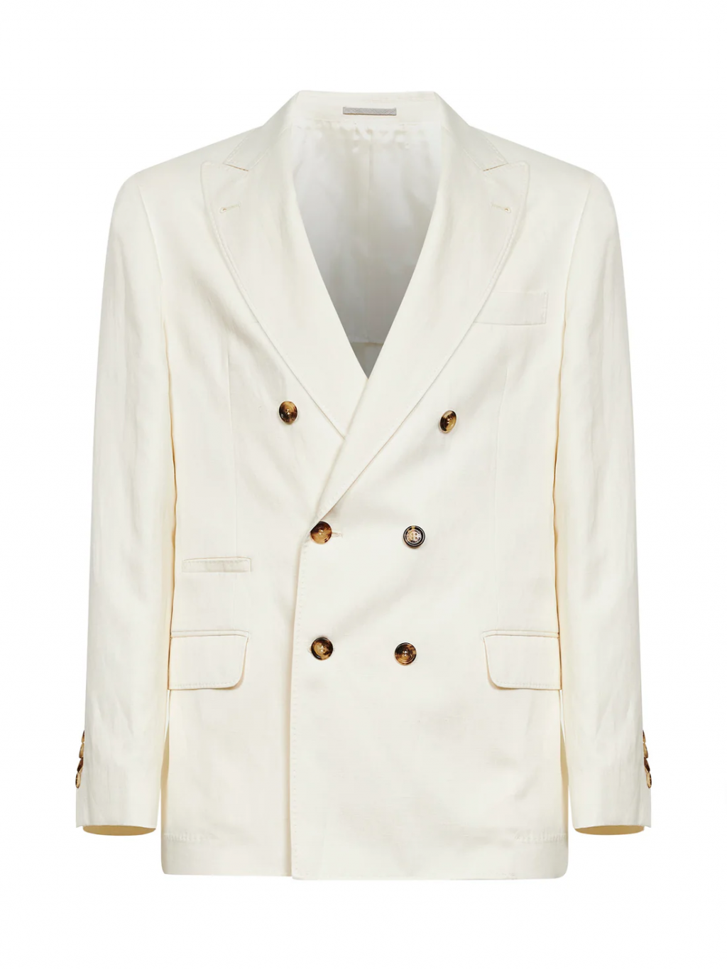 브루넬로 쿠치넬리 MR4787BPD 오프 화이트 실크 린넨 디컨스트럭티드 원앤어하프 블레이저