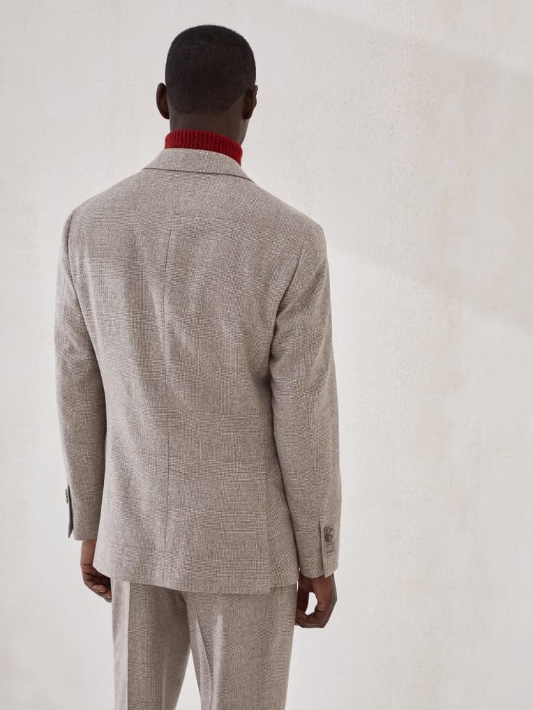 브루넬로 쿠치넬리 MA479LDFV2 바크 실크 울 캐시미어 도네갈 플란넬 프린스 오브 웨일스 체크 포멀 재킷