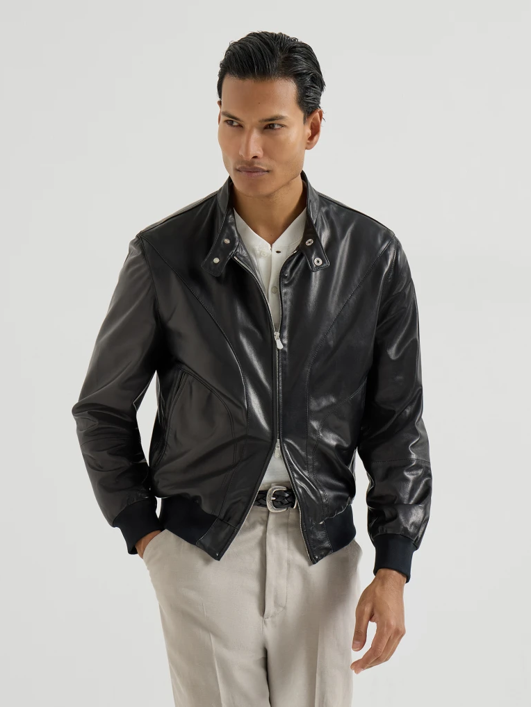 브루넬로 쿠치넬리 MPGBR2072 블랙 샤이니 나파 레더 파일럿 블루종