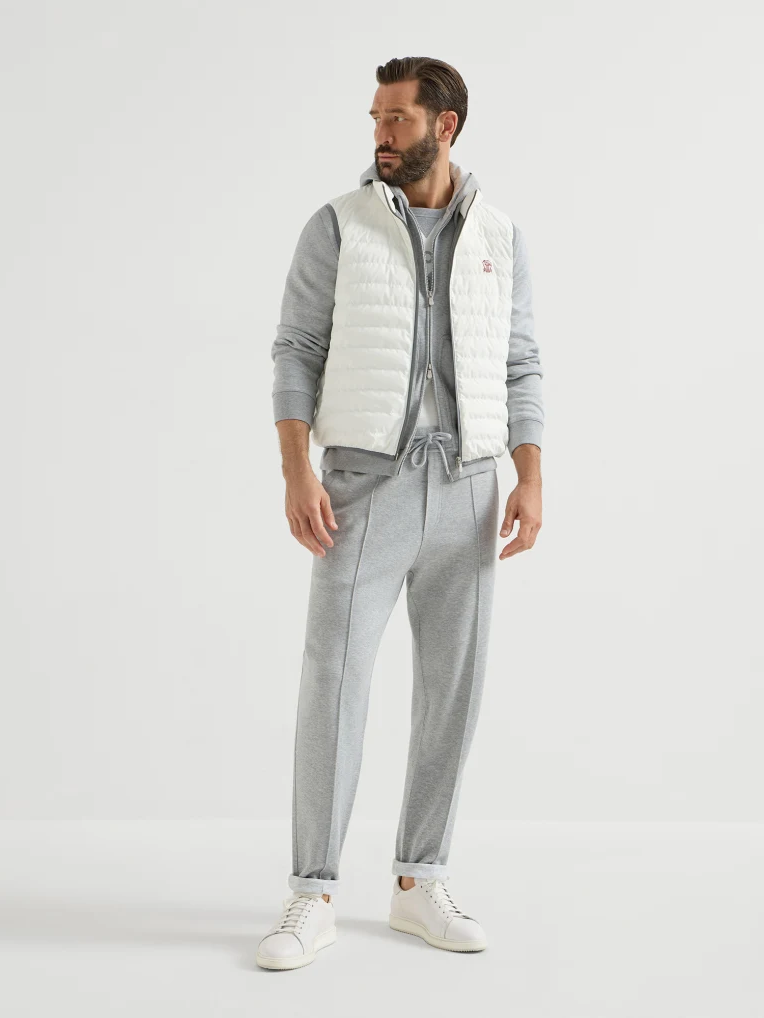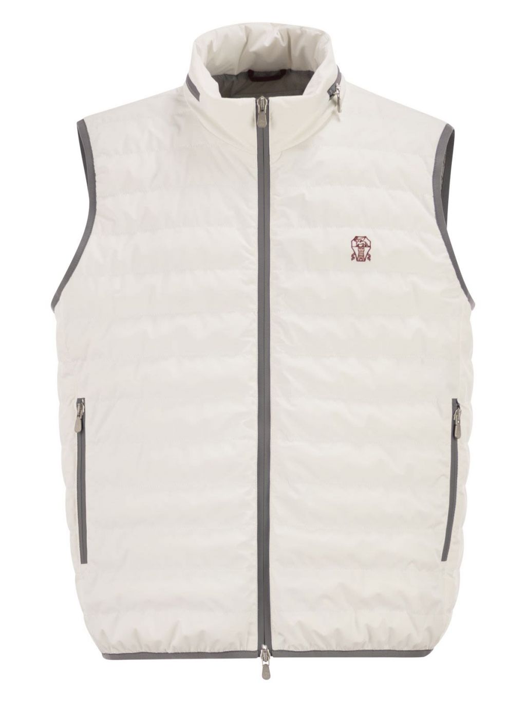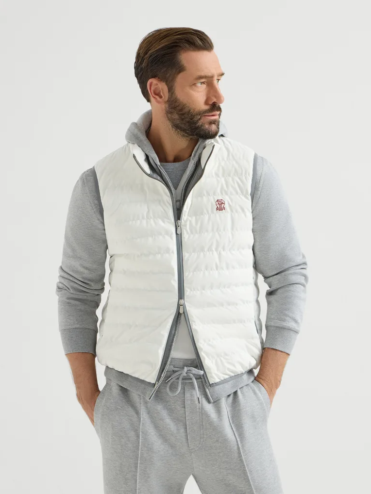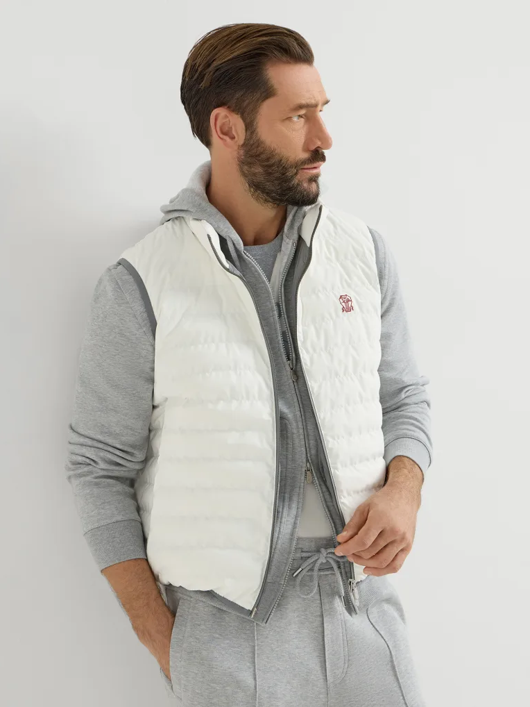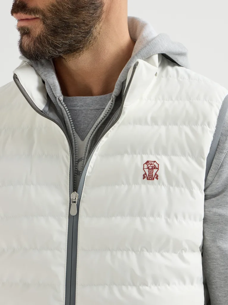 브루넬로 쿠치넬리 MM49A7460G 오프 화이트 본디드 나일론 패커블 후드 다운 베스트