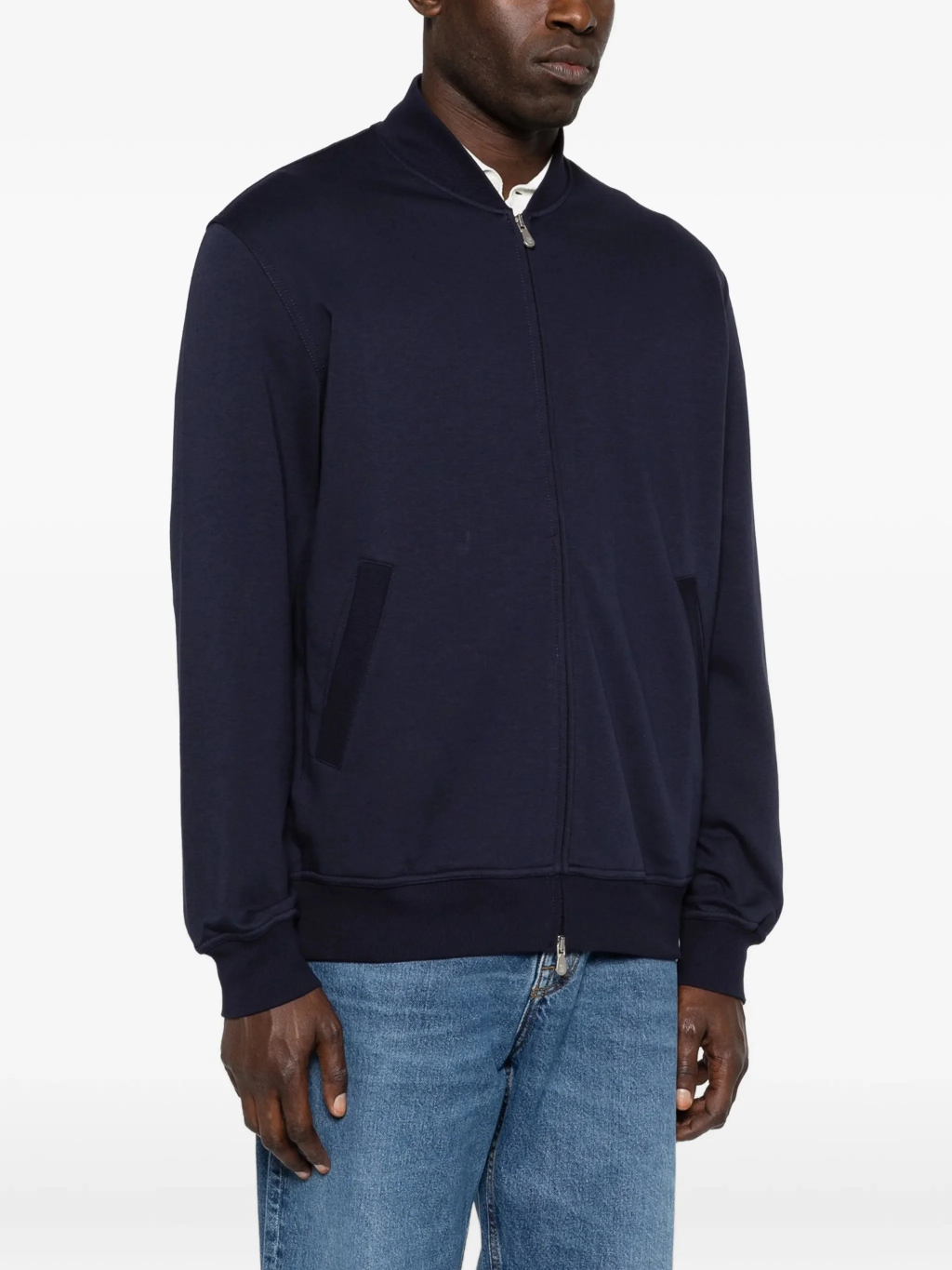 세련된 Brunello Cucinelli 소재는 휴식과 레저의 순간을 위한 트래블웨어 라인의 캐주얼한 스타일과 조화를 이룹니다. 클래식한 지퍼 여밈과 골지 장식으로 부드럽고 편안한 실루엣을 선보이는 보머 재킷 스타일의 스웨트셔츠는 테크노 코튼 프렌치 테리 소재로 제작되었으며, 겉면은 매끄럽고 콤팩트하며 안쪽은 피부에 닿는 촉감이 부드러운 독특한 텍스처 대비로 더욱 풍성합니다. 레귤러 핏으로 편안하고 다양하게 활용할 수 있습니다.