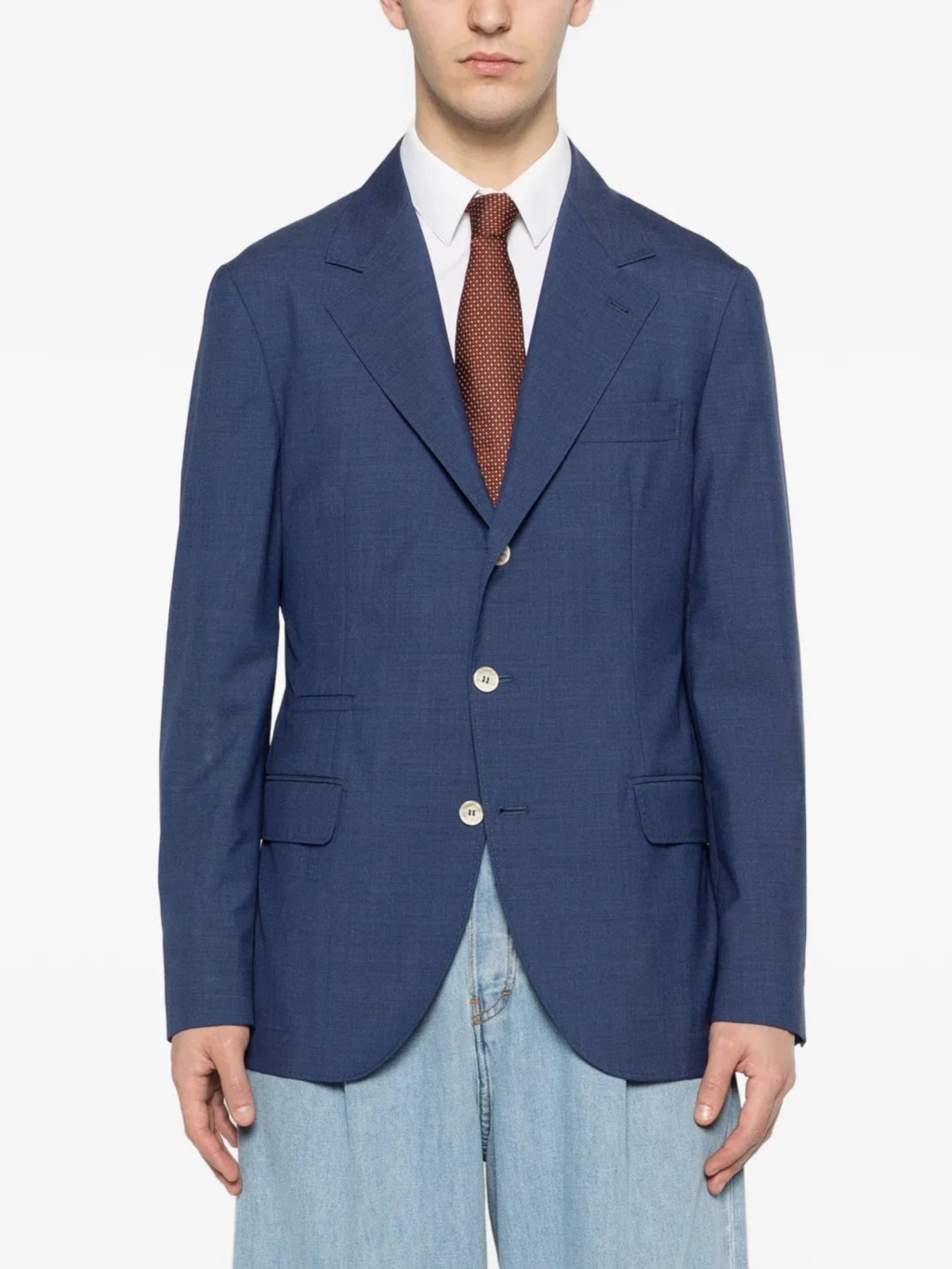 브루넬로 쿠치넬리 M032P7BTD 블루 버진 울 싱글 브레스티드 재킷