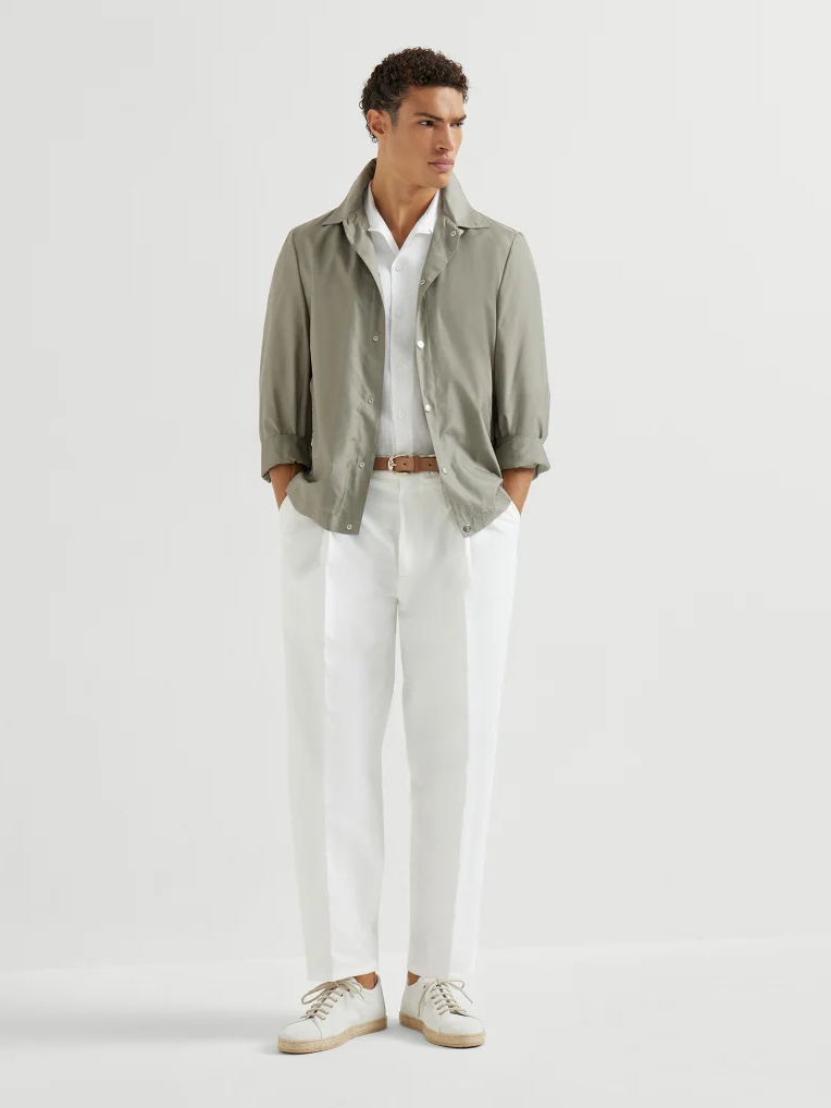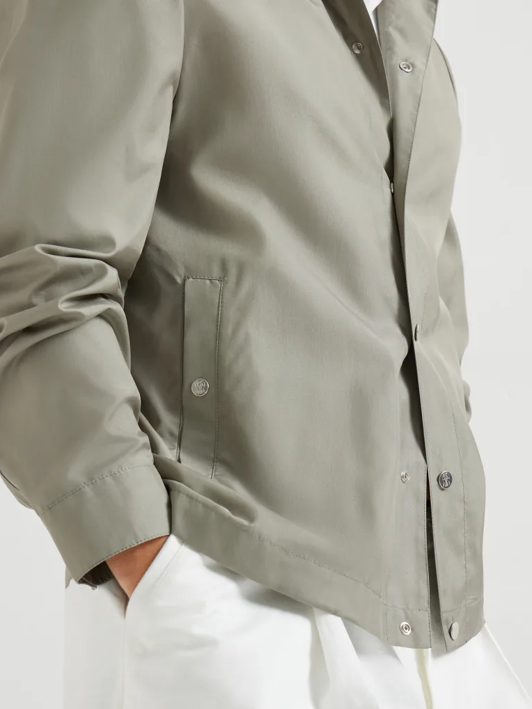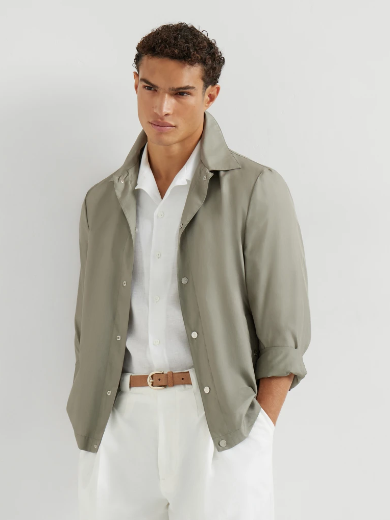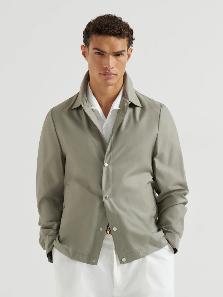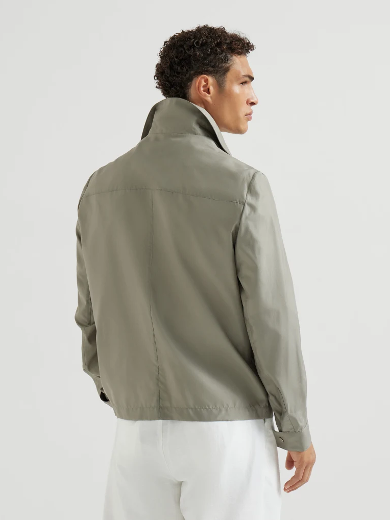 브루넬로 쿠치넬리 MZ4216541 카키 본디드 실크 언라인드 아우터웨어 재킷