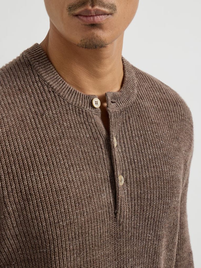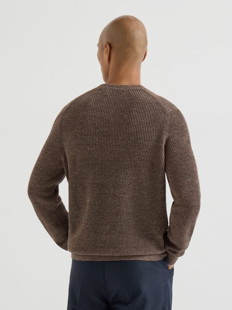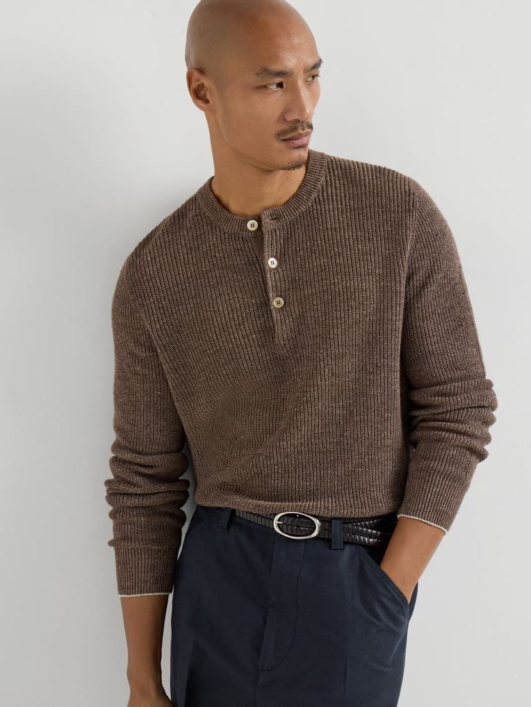 브루넬로 쿠치넬리 M2L707711 헤이즐넛 코튼 린넨 하프 잉글리시 립 헨리넥 니트 스웨터