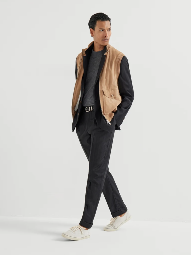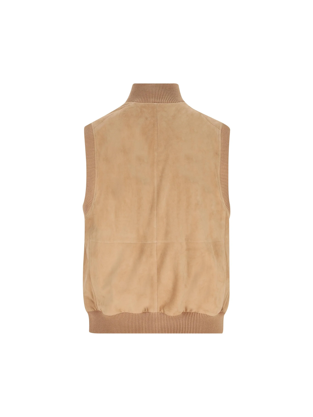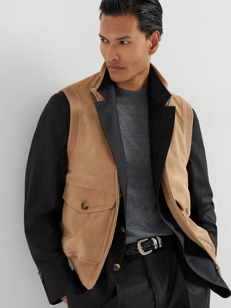 브루넬로 쿠치넬리 MPCLF2079 라이트 브라운 Thermore® 패딩 스웨이드 웨이스트코트