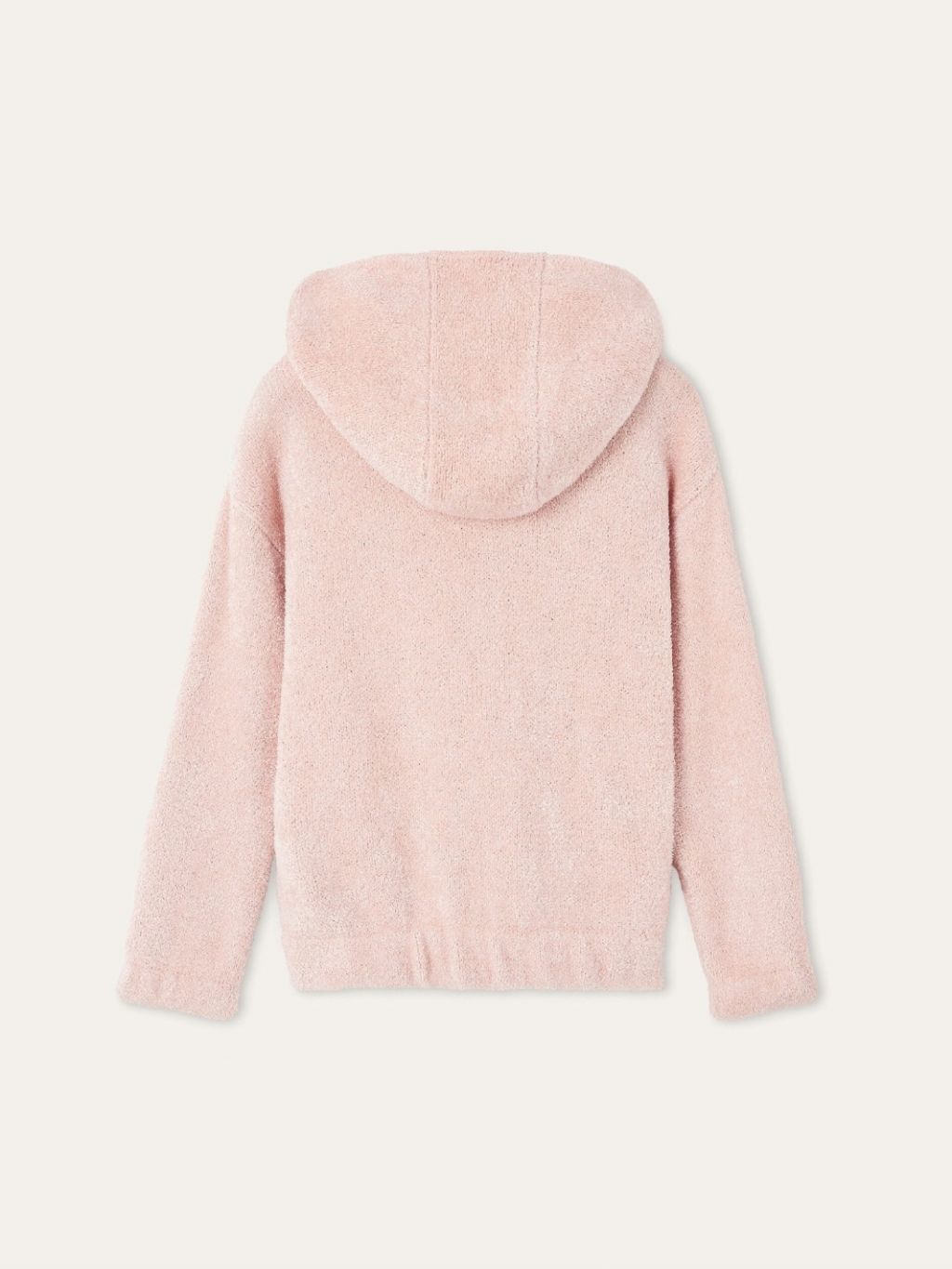 어린 탐험가를 위해 재해석된 캐주얼한 우아함, 이 후드 봄버 재킷은 독특하고 부드러운 텍스처의 로우 실크 원사로 제작되었습니다.