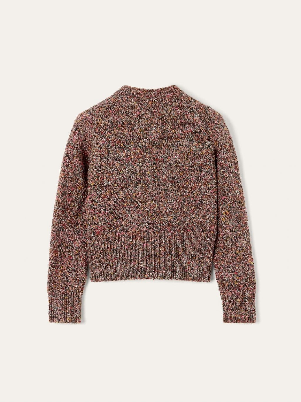 다채로운 멜란지 컬러와 정교한 스티치가 돋보이는 존재감 있는 가디건입니다.