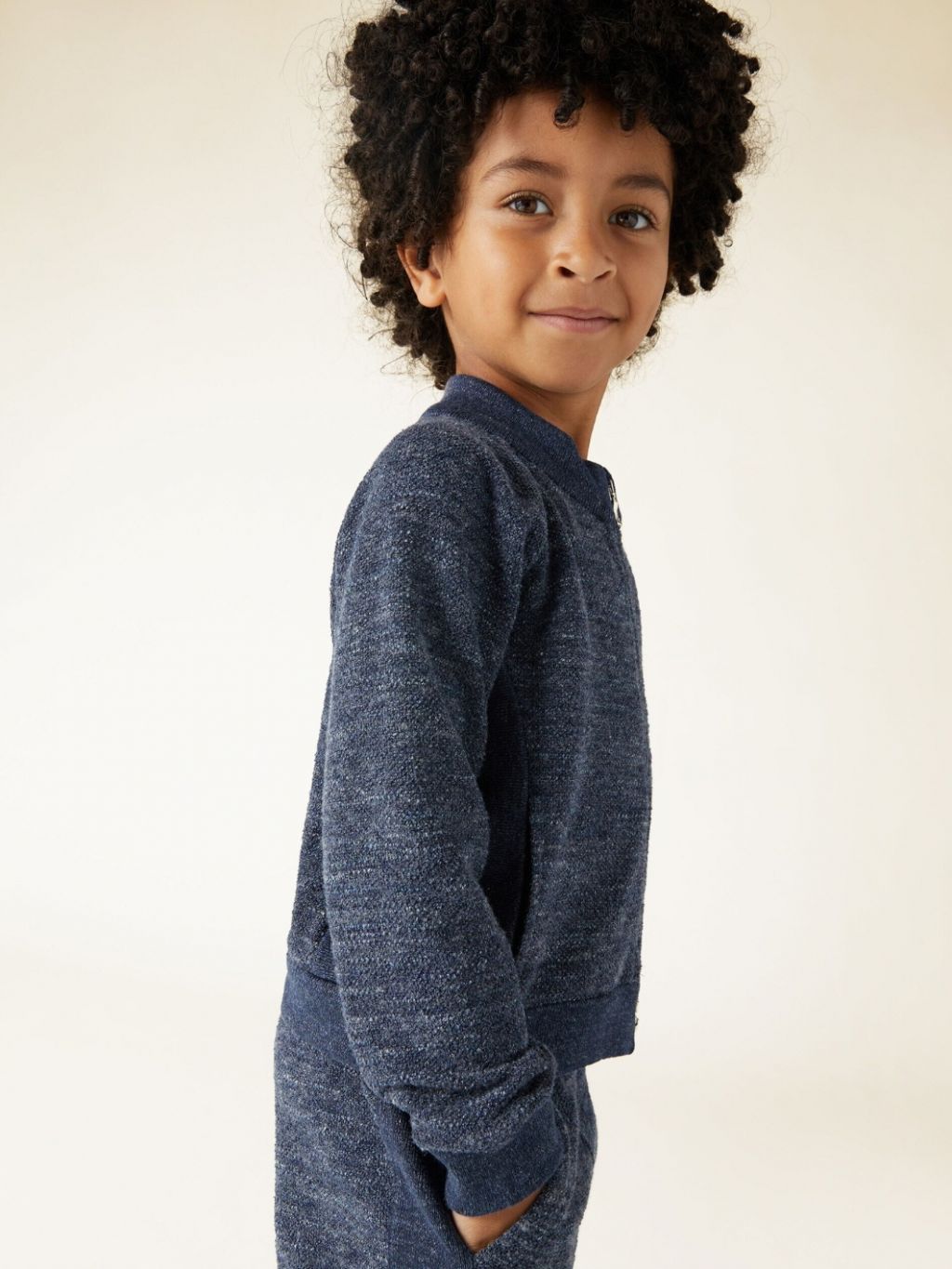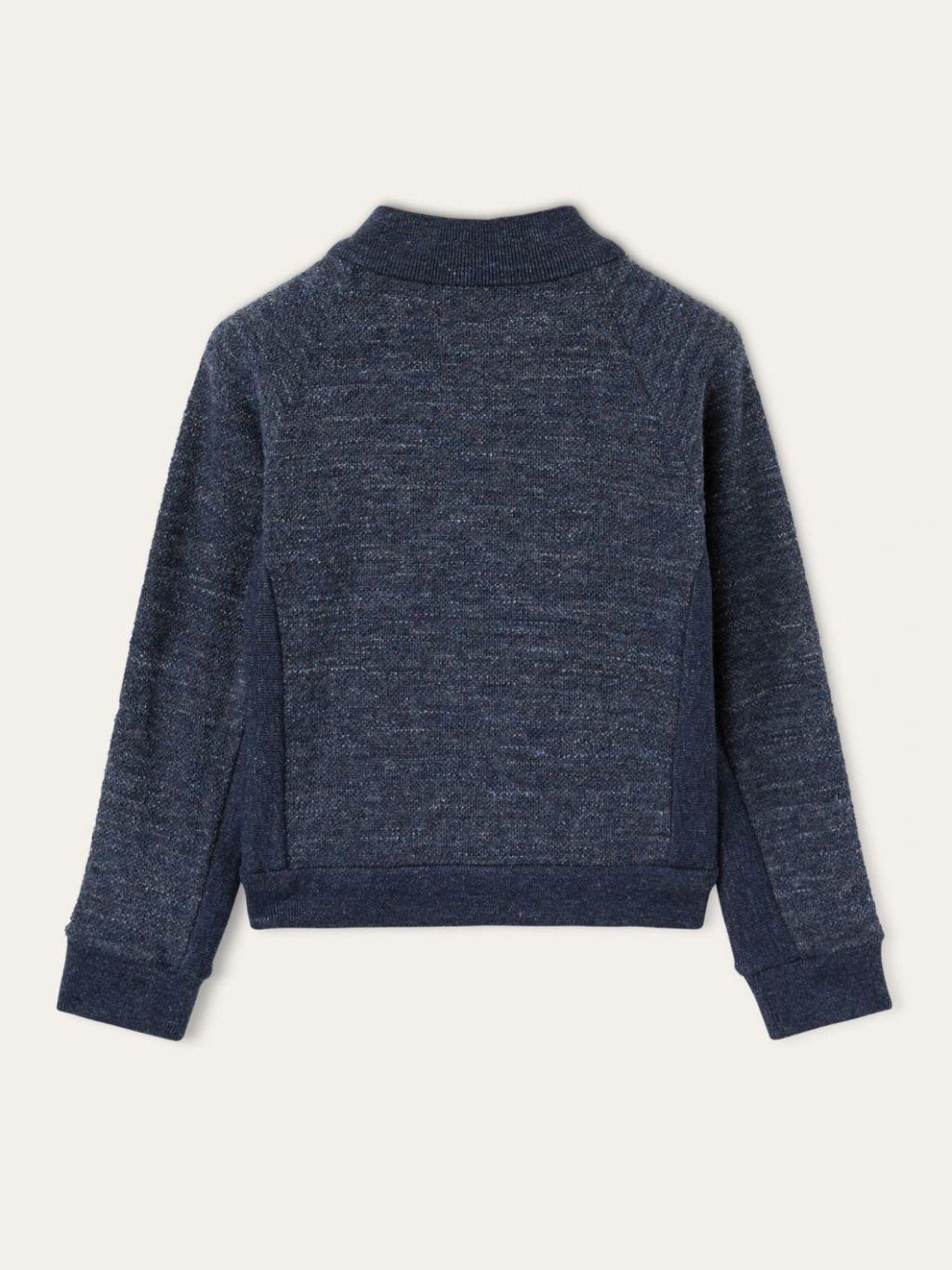 코튼과 울을 블렌딩한 스웨트 소재로 제작된 봄버 재킷은 볼륨감 있는 벌룬 실루엣과 래글런 숄더, 폴로 네크라인이 특징입니다.