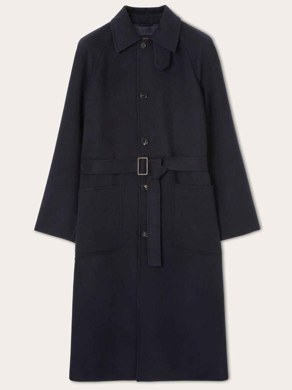 부드러운 실루엣의 싱글 브레스트 모노 코트로, 허리 벨트와 래글런 슬리브가 여유로운 핏을 한층 강조합니다.